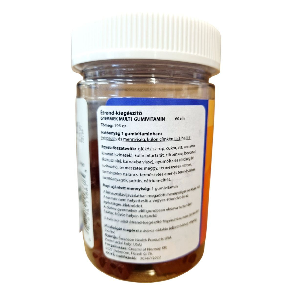 A Swanson Kids Multivitamin gumivitaminok célja, hogy támogassák a gyermekek egészséges fejlődését különböző vitaminok és ásványi anyagok biztosításával. A termék 60 db gumivitamint tartalmaz, amelyek különféle gyümölcsös ízekben érhetők el. Az összetevők között megtalálható a glükóz szirup, cukor, természetes ízesítőanyagok és színezékek. A termék használata során fontos, hogy a napi ajánlott mennyiséget ne lépjük túl, és tartsuk távol a 3 év alatti gyermekektől. A termék nem helyettesíti a vegyes étrendet és az egészséges életmódot.