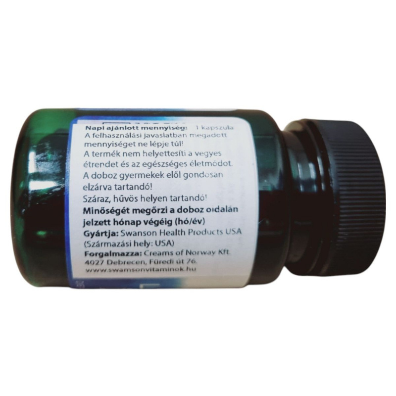 A Swanson LUTEIN észterek étrend-kiegészítő kapszula lutein észtereket tartalmaz, amelyek körömvirág kivonatból származnak. A lutein hozzájárulhat a szem egészségének támogatásához. A termék napraforgóolajat, zselatint, glicerint, sárga méhviaszt, tisztított vizet és természetes tokoferolokat is tartalmaz. Az ajánlott napi adag egy kapszula, amelyet nem szabad túllépni. A termék nem helyettesíti a vegyes étrendet és az egészséges életmódot, és gyermekek elől elzárva tartandó. Tárolása száraz, hűvös helyen javasolt. A terméket a Swanson Health Products USA gyártja, és a Creams of Norway Kft. forgalmazza Magyarországon.