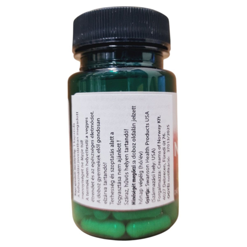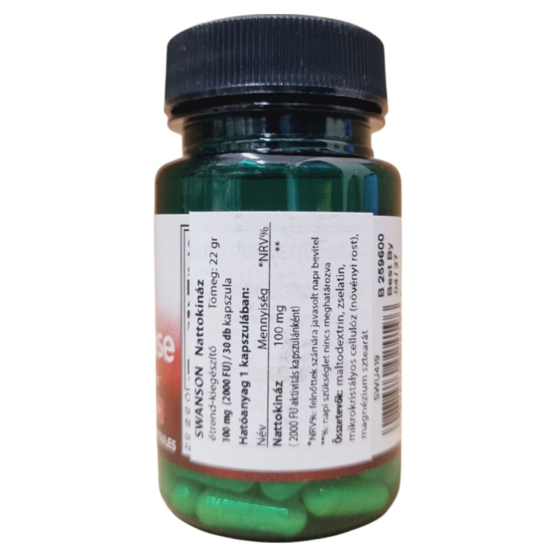 A SWANSON Nattokináz egy speciális étrend-kiegészítő, amely 30 kapszulát tartalmaz, mindegyik 100 mg nattokinázt (2000 FU) biztosít. A termék célja, hogy támogassa a szervezet egészséges működését. Az összetevők között megtalálható a maltodextrin, zselatin, mikrokristályos cellulóz és magnézium-sztearát. A termék használata során fontos betartani az ajánlott napi mennyiséget, és figyelembe venni a figyelmeztetéseket, különösen terhesség és szoptatás alatt. A terméket száraz, hűvös helyen kell tárolni, és gyermekek elől elzárva tartani. A gyártó Swanson Health Products USA, a forgalmazó pedig a Creams of Norway Kft.
