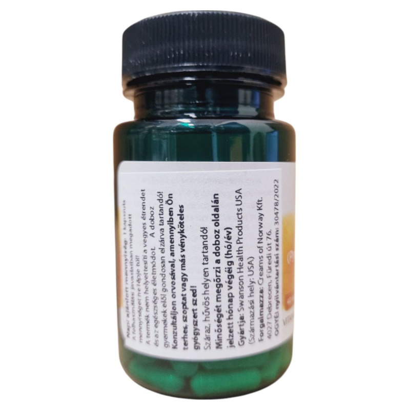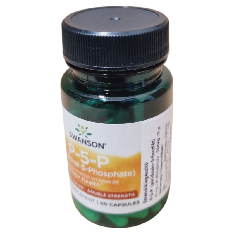 A Swanson P-5-P étrend-kiegészítő kapszulánként 40 mg B6 vitamint tartalmaz, amely a B6 vitamin koenzim formája, a piridoxin-5-foszfát. Ez a termék hozzájárulhat az egészséges életmód támogatásához. A terméket a Swanson Health Products gyártja az USA-ban, és a Creams of Norway Kft. forgalmazza Magyarországon. A termék használata során fontos, hogy ne lépje túl az ajánlott napi mennyiséget, és tartsa a kapszulákat gyermekek elől elzárva. A termék minőségét a doboz oldalán jelzett hónap végéig őrzi meg.