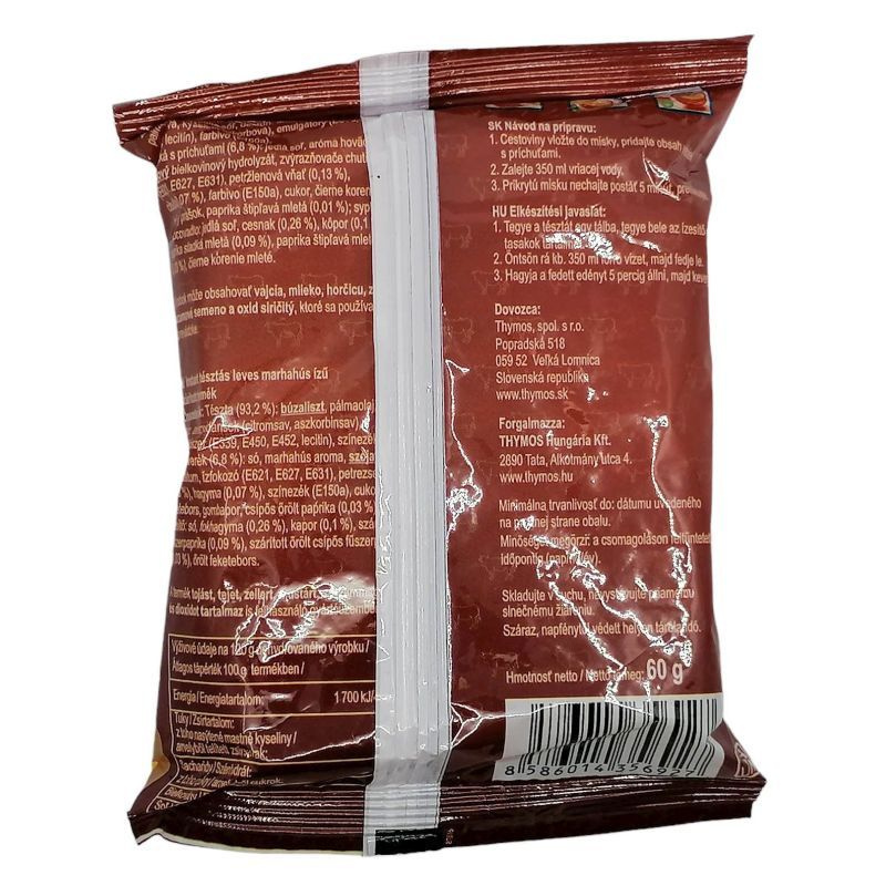 Ez az instant leves gazdag marhahús ízével és ízletes fűszereivel gyors megoldást kínál az étkezésekhez. Csak forró víz hozzáadásával, 5 perc alatt készíthető, ideális választás a rohanós napokra. Laktózmentes, de nem gluténmentes.