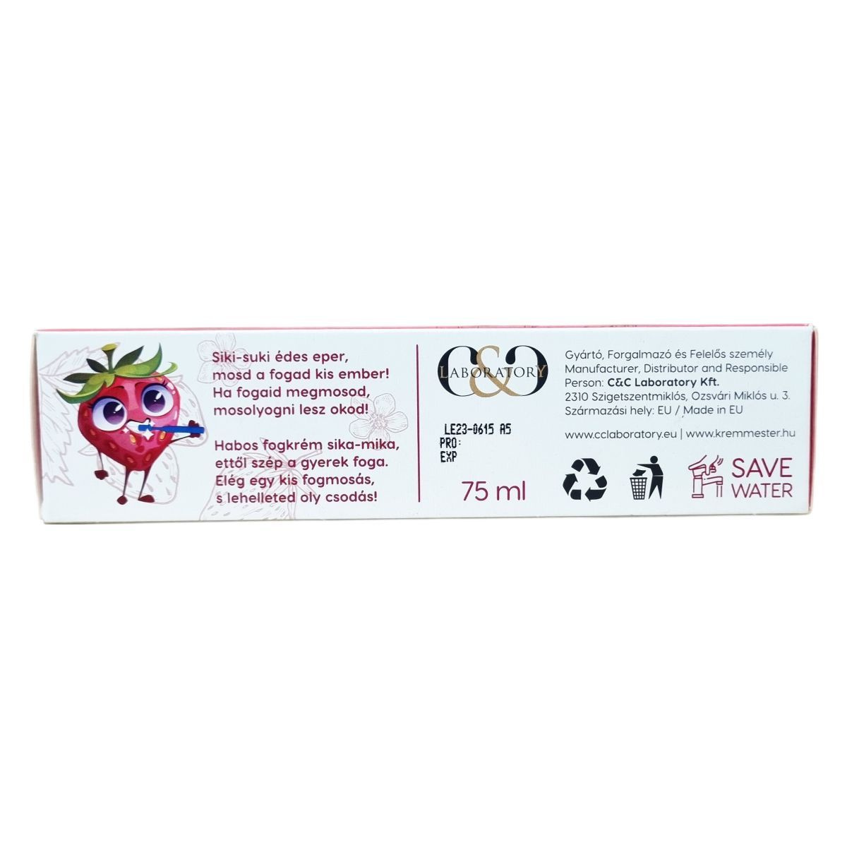 Ez a fogkrém kellemes eper ízzel tisztítja és védi a gyermekek fogait, miközben gyengéden eltávolítja a lepedéket mind a tejfogakról, mind a maradandó fogakról.