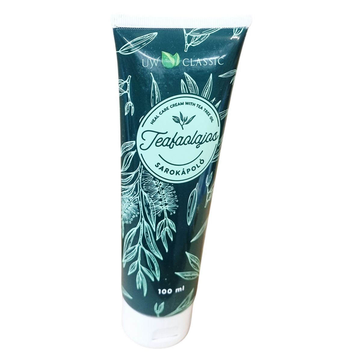 Ez a sarokápoló krém száraz, repedezett és megvastagodott bőr ápolására készült, hatékonyan hidratálja és puhítja a bőrfelületeket. A teafaolaj és egyéb bőrápoló összetevők gazdag ellátást nyújtanak, javítva a bőr állapotát. A termék gyártási azonosítója, valamint a gyártási és lejárati idő a tubuson található (nap/hó/év formátumban). Használat közben kerülje a termék közvetlen napfénynek és hőhatásnak való kitettségét, a megőrzött hatékonyság érdekében. Kiszerelése 100 ml.