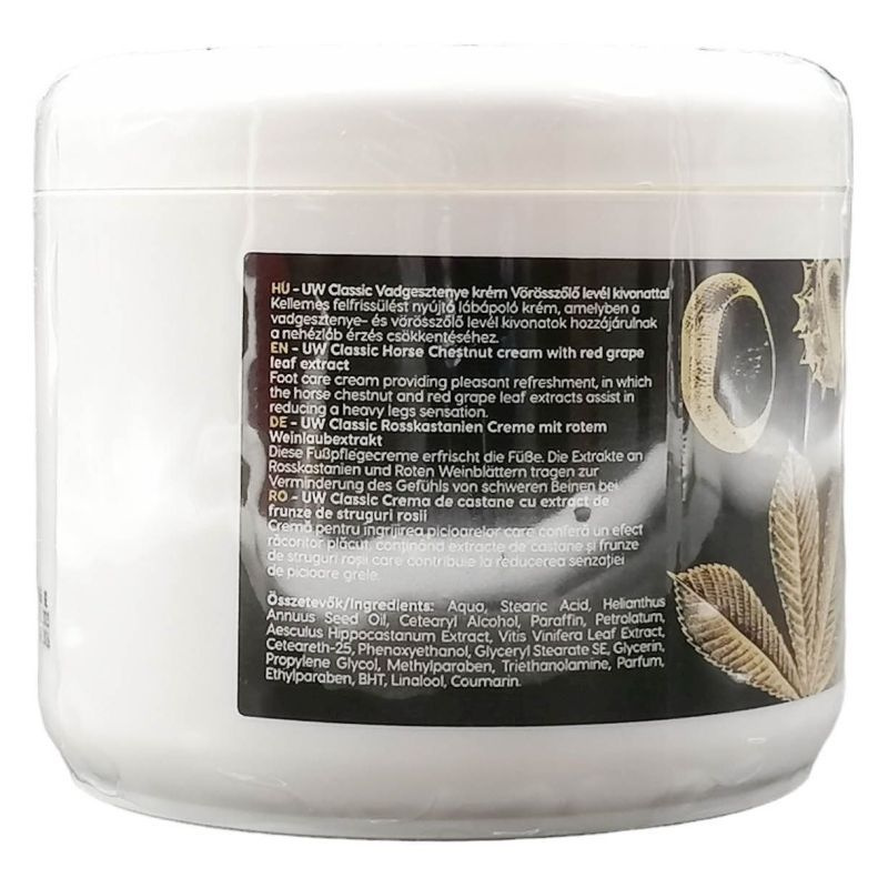 Kellemes felfrissülést nyújtó lábápoló krém, amelyben a vadgesztenye- és vörösszőlő levél kivonatok hozzájárulnak a nehézláb érzés csökkentéséhez.