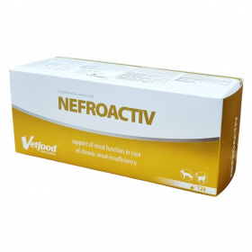 A NEFROACTIV egy olyan termék, amely a veseműködést támogatja felnőtt, krónikus veseelégtelenségben szenvedő kutyák és macskák esetében. A termék három hatóanyag innovatív kombinációját tartalmazza: lantán-karbonátot, Lespedeza capitata kivonatot és kitozánt. A lantán-karbonát csökkenti a foszfátfelszívódást. A Lespedeza capitata kivonat gazdag forrása a flavonoidoknak, amelyek gyorsíthatják a diurézist. A kitozán a D-glükózamin polimerje, amely tovább csökkentheti a foszfor felszívódását. Szükség esetén a kapszula felnyitható és a tartalma az eledelbe keverhető. Ha kedvence kizárólag száraz eledelt kap, nedvesítse meg a szemcséket a rászórt por megtapadása érdekében, így biztosítható a teljes mennyiség bevétele. A kapszula tömege: 640 mg. Technológiai adalékanyagok: mikrokristályos cellulóz, metil-cellulóz (kapszula), citromsav. Zootechnológiai adalékanyagok: lantán-karbonát-oktahidrát (150 mg/kapszula).