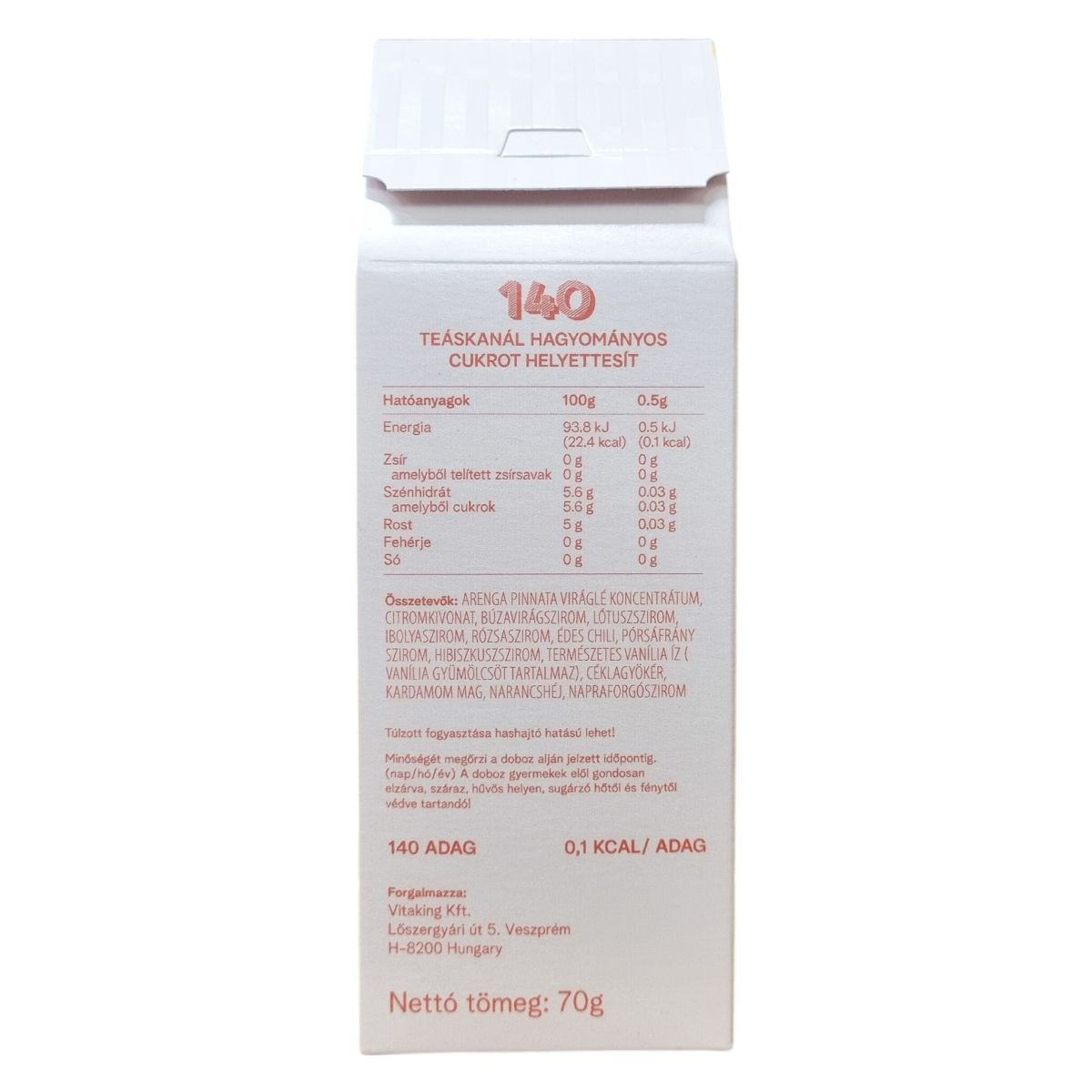 A termék egy teáskanállal 140-szeresen helyettesíti a hagyományos cukrot.