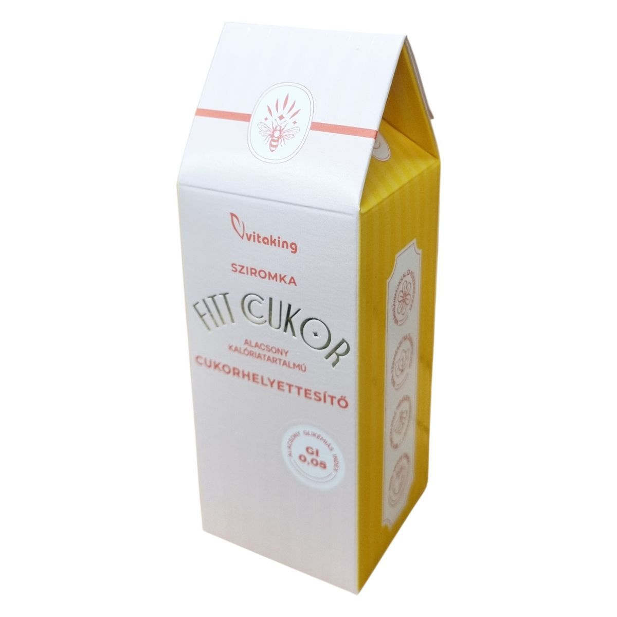 A Vitaking Sziromka Fitt Cukor egy alacsony kalóriatartalmú és alacsony glikémiás indexű (GI 0,05) cukorhelyettesítő, amely 13 különféle virágszirommal és fűszerrel készül. Természetes összetevői között megtalálható a cukorpálma viráglé koncentrátuma, valamint különböző virágszirom- és fűszerkivonatok, például búzavirágszirom, lótuszszirom, ibolyaszirom, rózsaszirom, hibiszkusz, céklagyökér és kardamom mag. A termék nem tartalmaz méhészeti termékeket, teljesen vegán, és 140 adagnyi, 0,1 kcal energiát tartalmazó kiszerelésben érhető el. Felhívjuk a figyelmet arra, hogy túlzott fogyasztása hashajtó hatással járhat.