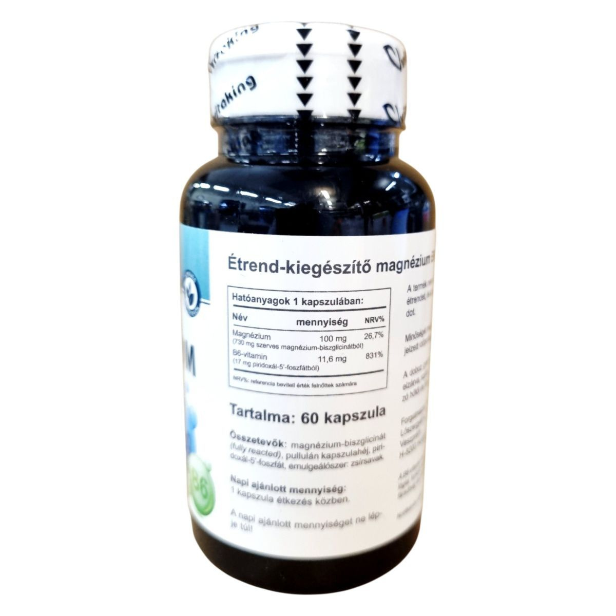A Vitaking Fully reacted MAGNÉZIUM + P-5-P (B6-vitamin) étrend-kiegészítő 60 kapszulás kiszerelésben kapható. A termék magnézium-biszglicinátot és piridoxál-5'-foszfátot tartalmaz, amelyek hozzájárulhatnak az idegrendszer normál működéséhez és a pszichológiai funkciók fenntartásához. A B6-vitamin segíthet a fáradtság és a kifáradás csökkentésében. A termék használata során fontos betartani az ajánlott napi mennyiséget, és nem helyettesíti a vegyes étrendet vagy az egészséges életmódot. Tárolása száraz, hűvös helyen javasolt, gyermekektől elzárva.