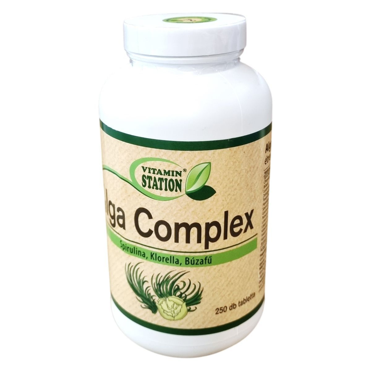 A Vitamin Station Alga Complex spirulina, klorella, búzafű és további növényi porok és kivonatok felhasználásával készült étrend-kiegészítő tabletta. Mesterséges aromát és tartósítószert nem tartalmaz. A termék kiváló minőségű alapanyagokból, szigorú gyártási feltételek mellett készül, 100% megelégedettségi garanciával.