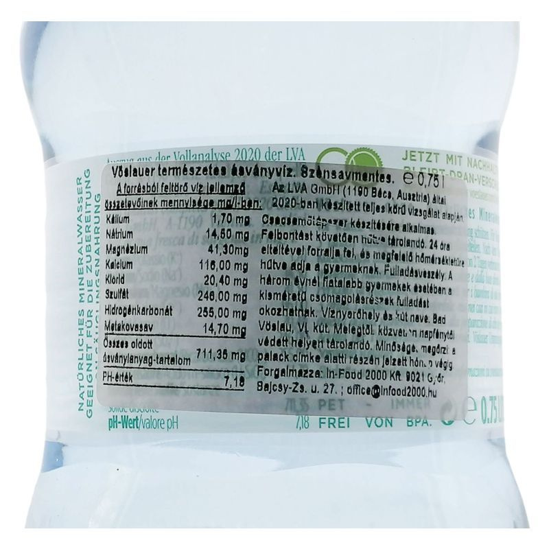 A Vöslauer természetes ásványvíz eredendően tiszta, természetes, kiegyensúlyozott ásványi anyag tartalmú és nátriumszegény - valódi különlegesség.