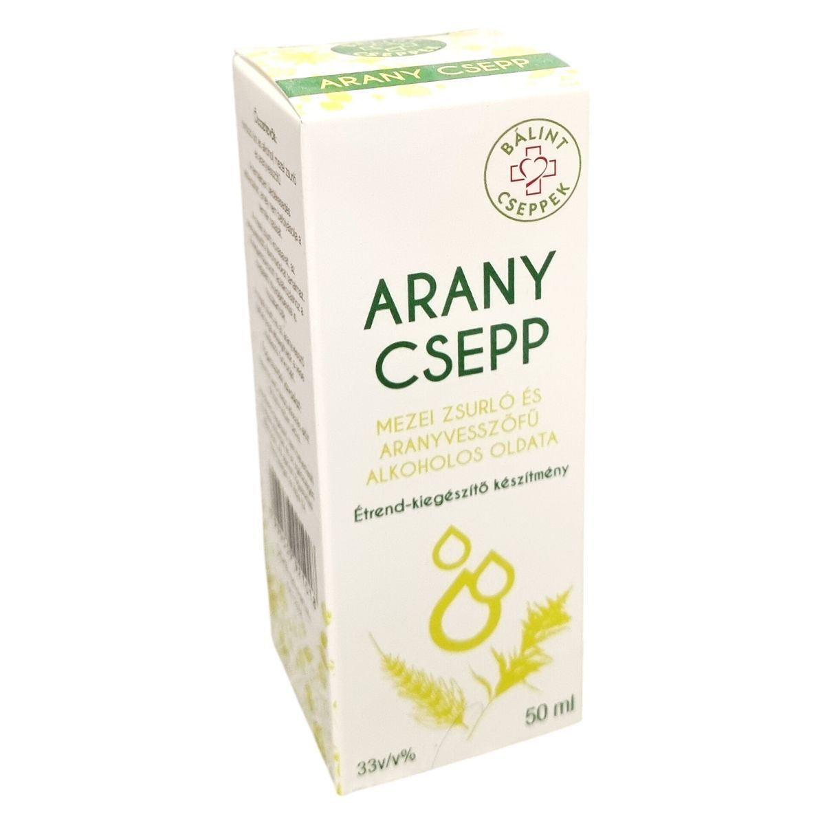 Az Arany Csepp egy mezei zsurló és aranyvesszőfű alkoholos oldatát tartalmazó étrend-kiegészítő. Egy adagban – 120 cseppben – 1 gramm mezei zsurló és 1 gramm aranyvesszőfű található meg. A mezei zsurló kovasavat, az aranyvesszőfű flavonoidokat tartalmaz, melyek hatóanyagai elősegíthetik a vese kiválasztó funkcióját. A termék hordozó anyagai víz és alkohol. Ülepedés előfordulhat, ami nem befolyásolja a termék hatását. A kiegyensúlyozott táplálkozás és megfelelő folyadékbevitel fontos a szervezet egészsége szempontjából. Az ajánlott fogyasztási javaslat napi három alkalommal 40 csepp, étkezés előtt, 1 dl tiszta vízben oldva. A készítmény nem helyettesíti a változatos étrendet és az egészséges életmódot.