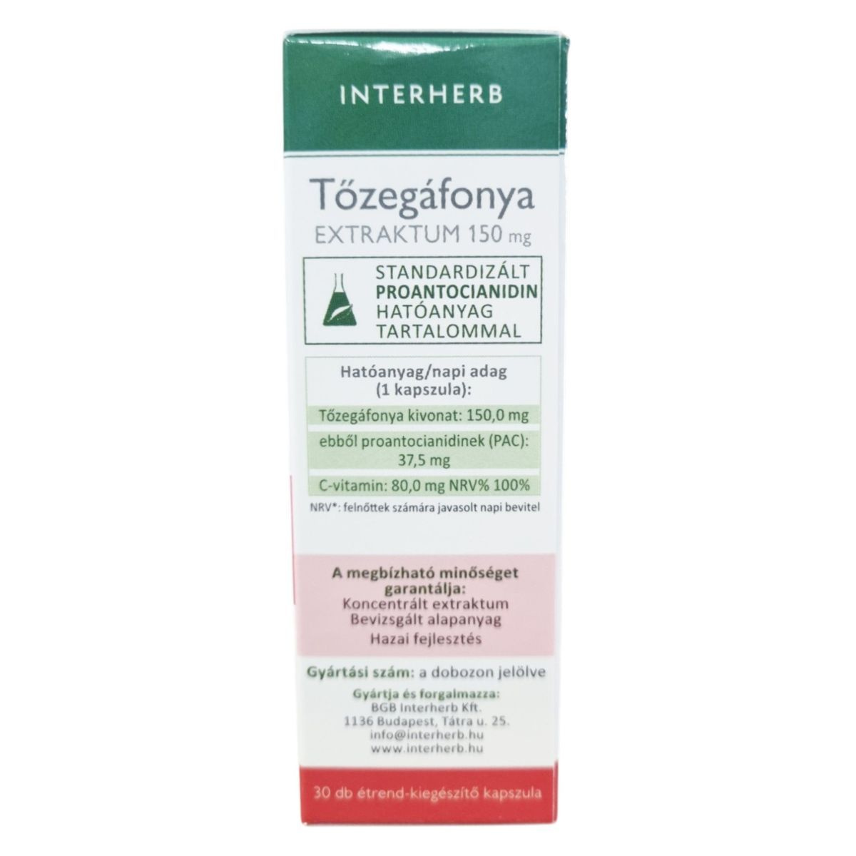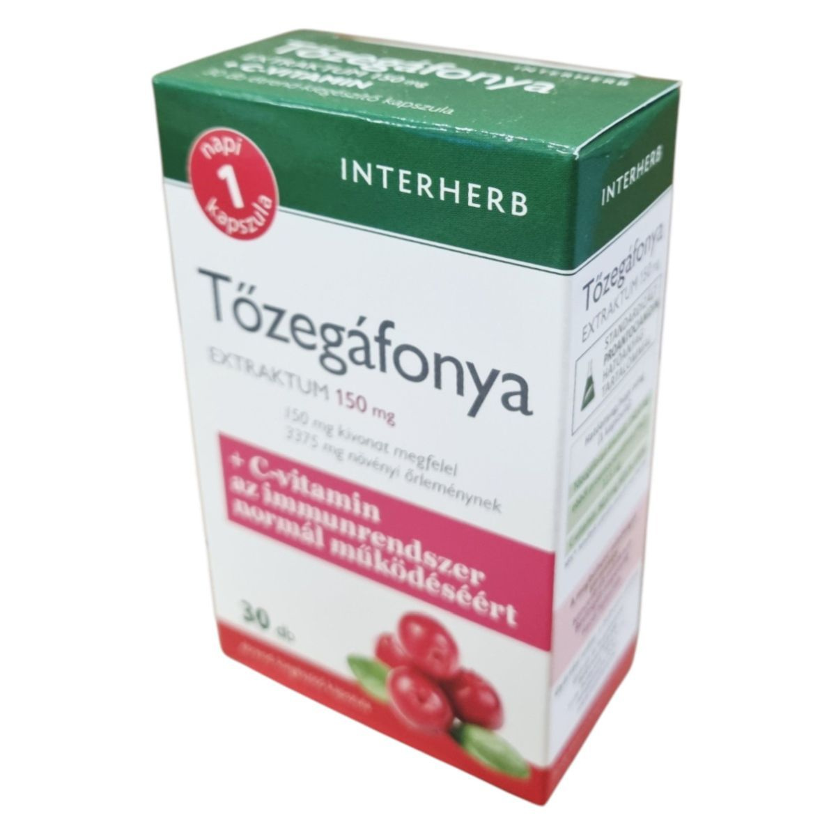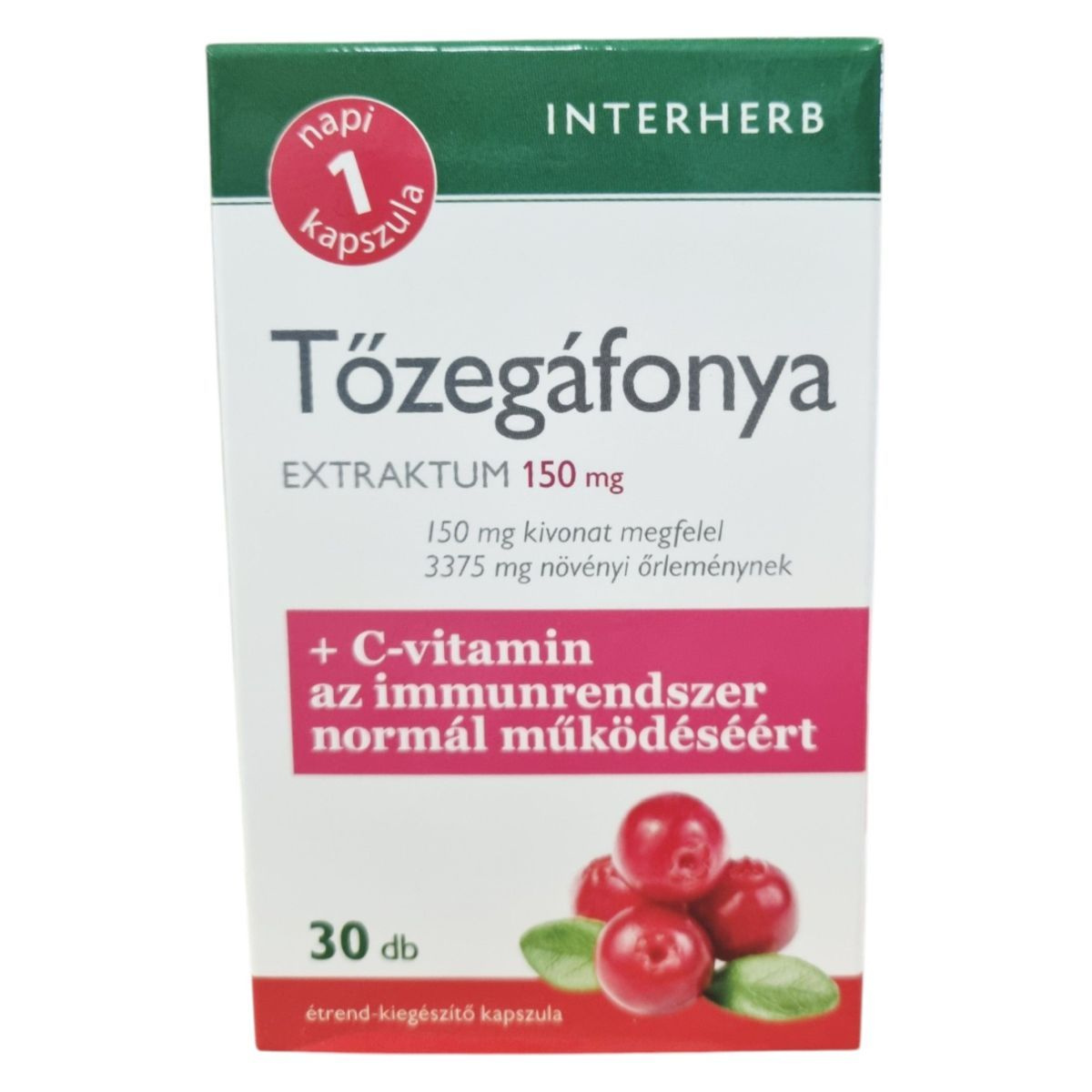 Az INTERHERB Tőzegáfonya EXTRAKTUM 150 mg kapszula amerikai tőzegáfonya kivonatot tartalmaz, amely gazdag antocián típusú flavonoid vegyületekben. A termék C-vitamint is tartalmaz, amely hozzájárulhat az immunrendszer normál működéséhez és a szervezet oxidatív stresszel szembeni védelméhez. A kapszula koncentrált proantocianidin (PAC) hatóanyag-tartalommal rendelkezik, amely 3375 mg tőzegáfonya gyümölcsporának felel meg. A termék megbízható minőségét a koncentrált extraktum, a bevizsgált alapanyag és a hazai fejlesztés garantálja.