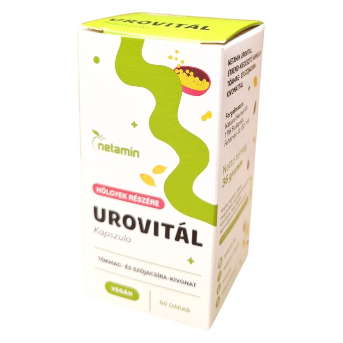 A Netamin Urovitál kapszula kifejezetten hölgyek számára készült, tökmag- és szójacsíra-kivonat kombinációjával. A termék 100% vegán, és növényi kapszulában található. A szójacsíra-kivonat 40% izoflavon-tartalomra standardizált, ami hozzájárulhat a nők egészségének támogatásához. A kapszulák napi kétszeri fogyasztása javasolt bő folyadékkal, lehetőleg étkezés közben. Fontos, hogy az ajánlott napi adagot ne lépje túl, és az étrend-kiegészítő nem helyettesíti a vegyes étrendet és az egészséges életmódot. A termék forgalmazója a Natural Herbal Kft., és a kapszulák nettó tömege 36 gramm.