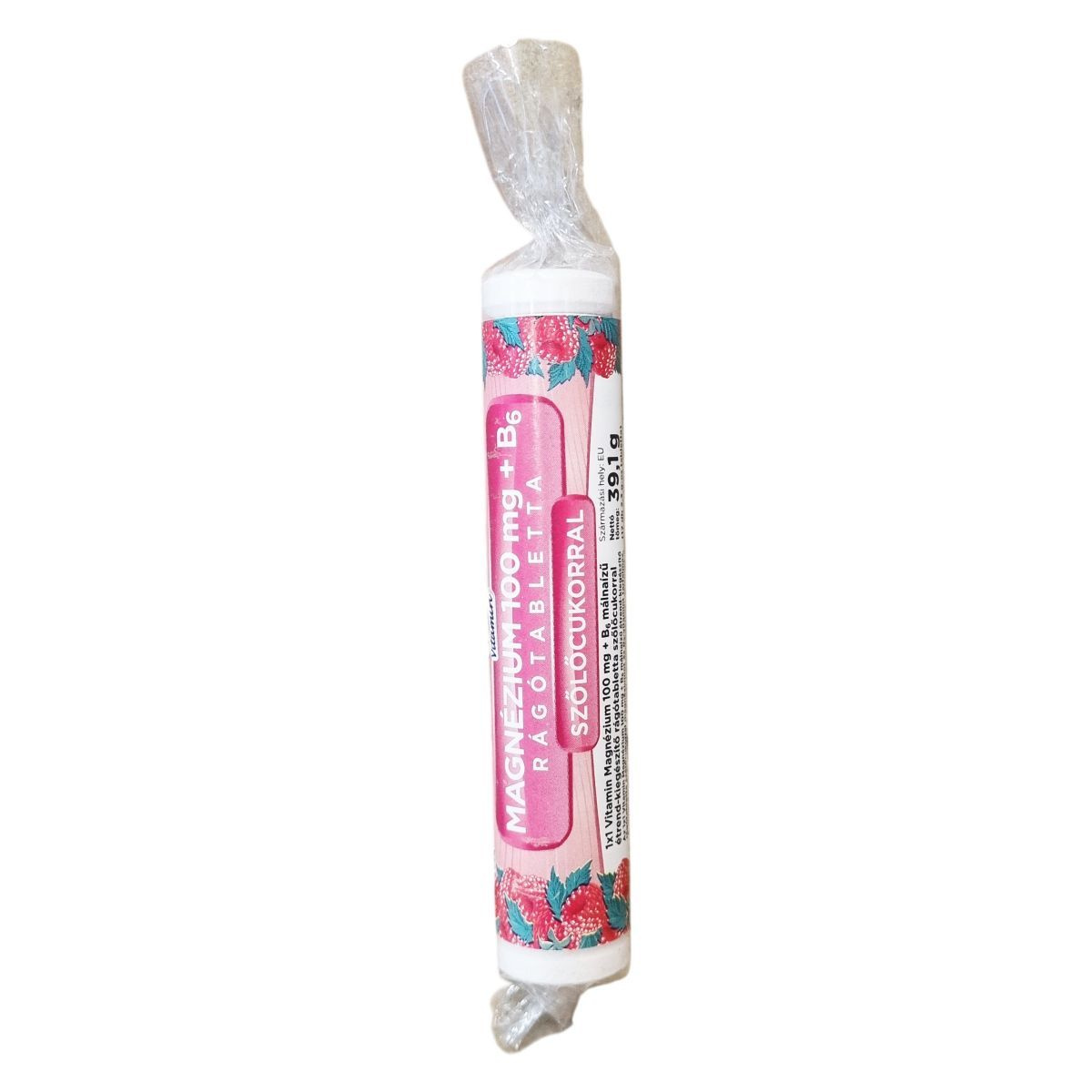 Az 1x1 Vitamin Magnézium 100 mg + B6 málnaízű rágótabletta szőlőcukorral magnéziumot és B6-vitamint tartalmaz, amely hozzájárulhat a normál izomműködéshez és segítheti a fáradtság csökkentését. A termék szőlőcukrot is tartalmaz, és a napi ajánlott adag három rágótabletta, mely 300 mg magnéziumot és 1,05 mg B6-vitamint biztosít. A termék összetevői között szerepel dextróz, magnézium-oxid, citromsav, maltodextrin, csomósodást gátló anyag, természetes aroma, pálmaolaj, gumiarábikum és piridoxin-hidroklorid. Energia- és tápértéke 100 grammra és a napi adagra lebontva részletesen dokumentált. A termék származási helye az Európai Unió. Az étrend-kiegészítő nem helyettesíti a kiegyensúlyozott étrendet és az egészséges életmódot. A tabletták érzékenyek a levegőre és a páratartalomra, ezért száraz, hűvös helyen kell tárolni őket, elzárva a gyermekektől.