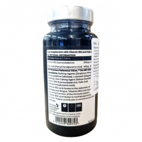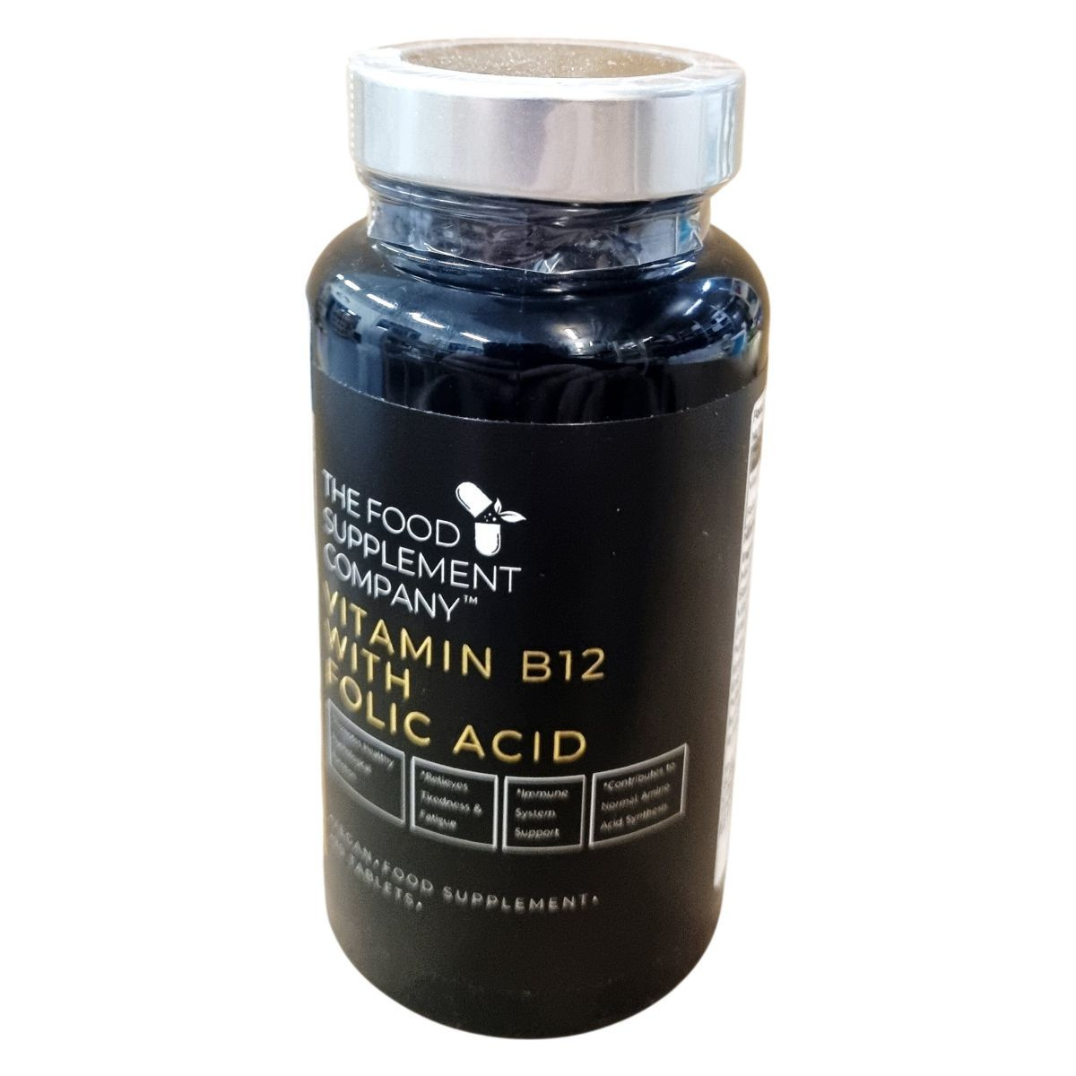 The Food Supplement Company B12-vitamint és folsavat tartalmazó vegán étrend-kiegészítő, amely hozzájárul a fáradtság csökkentéséhez, az immunrendszer normál működéséhez és a normál pszichológiai funkcióhoz.