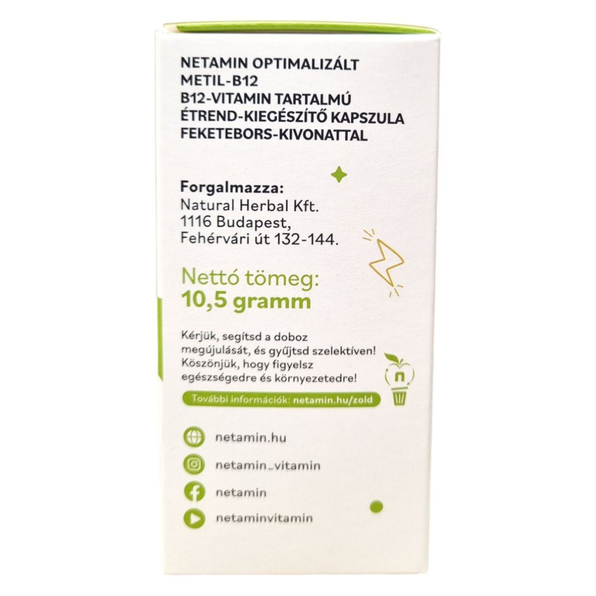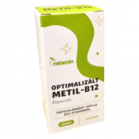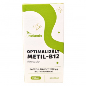 A Netamin Optimalizált Metil-B12 kapszula 1200 µg B12-vitamint tartalmaz metilkobalamin formájában, amely hozzájárulhat az idegrendszer és az immunrendszer normál működéséhez, a normál vörösvérsejt-képződéshez, és a fáradtság csökkentéséhez. A termék 100% vegán, és feketebors-kivonatot is tartalmaz, amely piperin formájában lehet jelen. A kapszulák napi egy darabos adagolása javasolt, bő folyadékfogyasztással. Fontos, hogy az ajánlott napi adagot ne lépje túl, és az étrend-kiegészítő nem helyettesíti a vegyes étrendet és az egészséges életmódot.