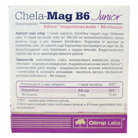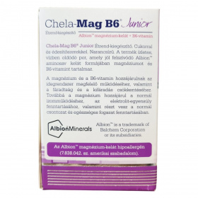 A Chela-Mag B6® Junior egy narancsízű, vízben oldódó por, amely jól felszívódó Albion™ aminosav kelát formájában tartalmaz magnéziumot és B6-vitamint. Ez a hipoallergén formula az amerikai szabadalom által védett Albion™ magnézium-kelátot használja, amely hozzájárulhat az idegrendszer megfelelő működéséhez, a fáradtság és kifáradás csökkentéséhez, valamint a normál izomműködéshez, elektrolit-egyensúly fenntartásához, továbbá részt vehet a normál csontozat és egészséges fogazat fenntartásában. A készítmény különösen alkalmas a 3 éven felüli gyermekek számára, megnövekedett magnézium- és B6-vitamin szükséglet idején, például test legyengülése vagy szellemi erőfeszítés időszakában.