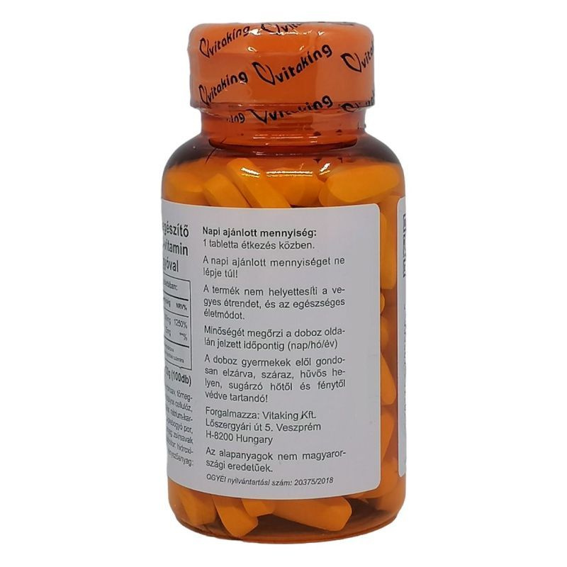 Különleges Vitaking C-vitamin készítmény, hisz az eddig megszokottakkal ellentétben 1500 mg C-vitamint tartalmaz. A C-vitamin vízben oldódó, nagyhatású antioxidáns. Egyike a leggyakrabban szedett vitaminoknak. A csipkebogyó a természetben előforduló legjobb C-vitamin forrás.