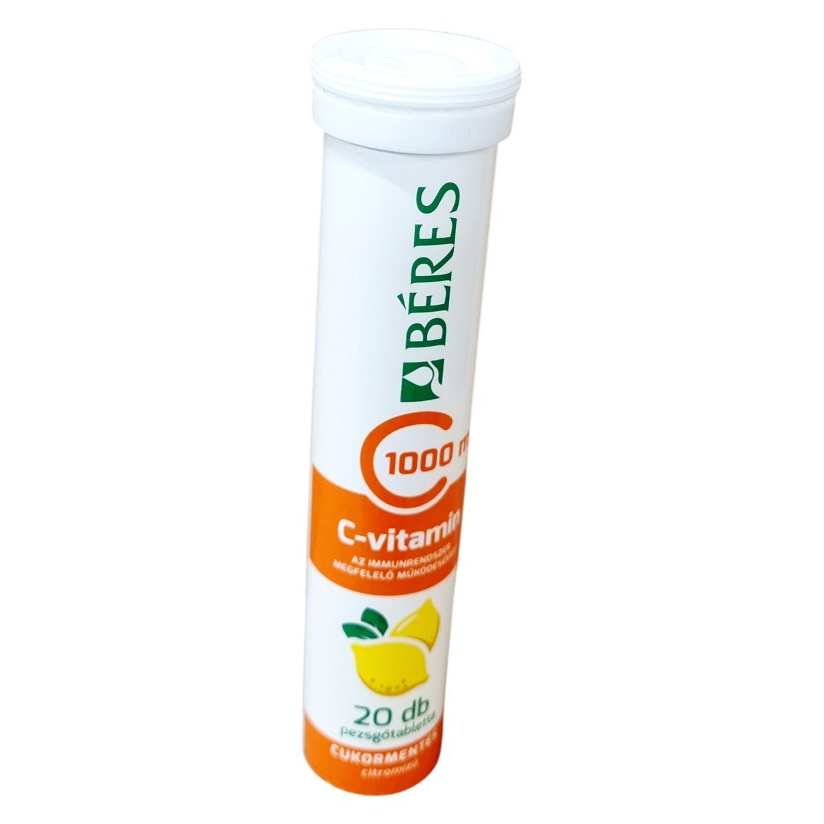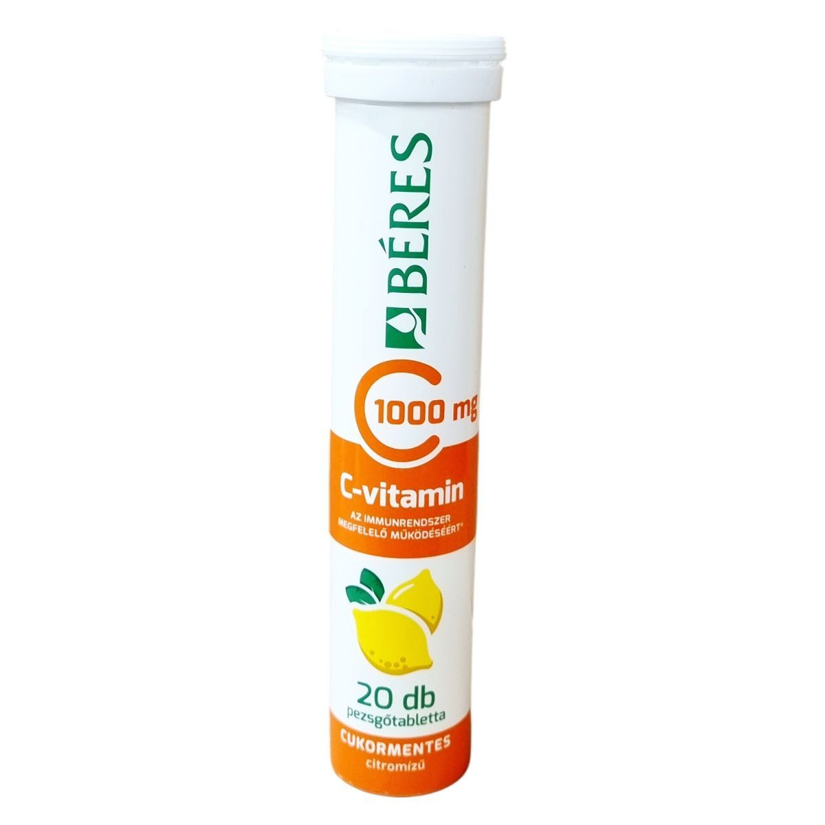 A Béres C-vitamin pezsgőtabletta édesítőszerekkel készül, citromízű és cukormentes. Egy tabletta 1000 mg C-vitamint tartalmaz, amely a felnőttekre vonatkozó napi beviteli referenciaérték 1250%-a. A termék minőségét a tubus alján jelzett időpontig megőrzi.