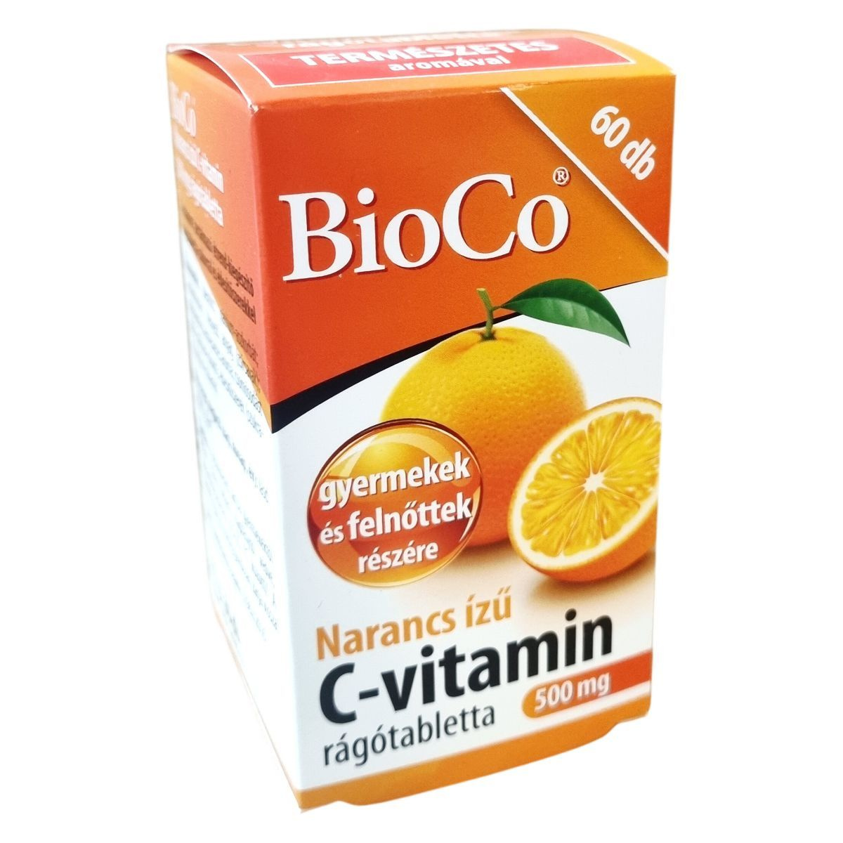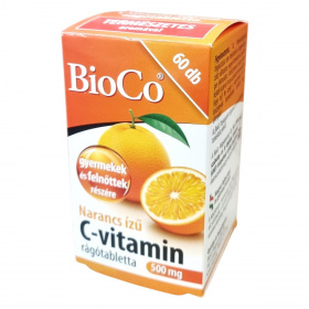 A BioCo Narancs ízű C-vitamin rágótabletta 500 mg C-vitamint tartalmaz, melyet természetes aromával ízesítenek. A termék elsősorban azoknak ajánlott, akik a vízzel lenyelhető tabletta helyett inkább rágótablettával szeretnék biztosítani szervezetük C-vitamin ellátottságát, illetve nyelési nehézséggel küzdőknek, például gyermekeknek vagy időseknek. Különösen javasolt fokozott C-vitamin szükséglet idején, egyoldalú vagy vitaminhiányos táplálkozás esetén, illetve betegséget követő regeneráció során. A termék magyar fejlesztésű és gyártású, a hatóanyag nem Magyarországról származik, azonban a fejlesztés és gyártás kizárólag Magyarországon történik. A BioCo Magyarország Kft. tanúsított élelmiszerbiztonsági rendszert működtet, megfelelve az ISO 22000 szabványnak és a GMP előírásainak. A csomagolás 60 db rágótablettát tartalmaz, egyenként 1,35 g súlyban.