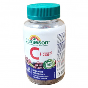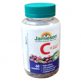 A Jamieson C + immune shield™MC gumicukor természetes bodza ízzel készült, mely hozzájárulhat a megfázás tüneteinek enyhítéséhez és a mindennapi immunrendszeri támogatáshoz. Hatóanyagai között megtalálható a C-vitamin, amely segítheti az immun- és idegrendszer normál működését, támogathatja a vérerek megfelelő működését és védelmet nyújthat a sejtek oxidatív stresszel szemben. A termékben szintén jelen van a bodza kivonat, a D3-vitamin, a B12-vitamin és a cink, melyek együttesen hozzájárulhatnak az immunrendszer megfelelő működéséhez. Minden egyes gumicukor precízen adagolt hatóanyagokat tartalmaz, a fogyasztása kényelmes és ízletes alternatívát kínál. A termék vegetáriánus összetevőket tartalmaz, mesterséges színezék, aroma vagy tartósítószer nélkül készül, és nem tartalmaz glutént, laktózt, valamint gelatinmentes. Használata előtt figyelmet kell fordítani az esetleges allergiás reakciókra, valamint a terhesség és szoptatás időszakára. A csomagolás 60 gumicukrot tartalmaz, amelyeket étkezés közben ajánlott elfogyasztani, a hatóanyagok optimális felszívódása érdekében.