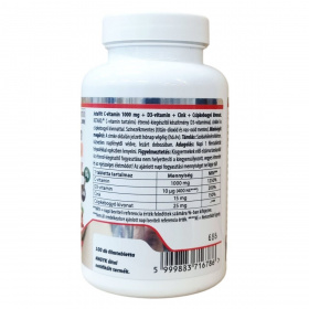 1000 mg nyújtott kioldódású C-vitamin étrend-kiegészítő készítmény D3-vitaminnal, cinkkel és csipkebogyó kivonattal, mely fokozatosan adagolja a szervezetünk számára a C-vitamint.