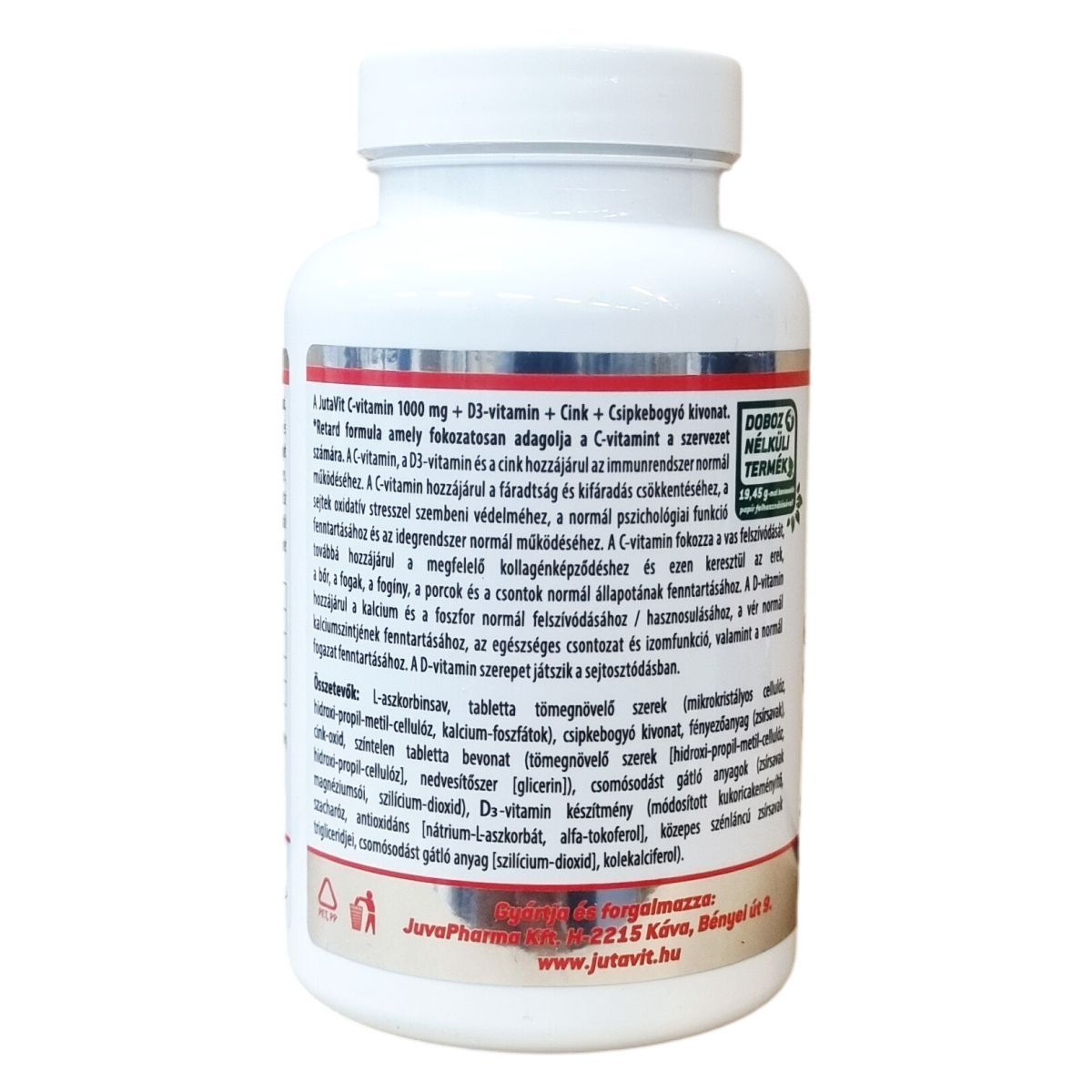A JutaVit C-vitamin 1000 mg Retard egy C-vitamin tartalmú étrend-kiegészítő, mely D3-vitamint, cinket és csipkebogyó kivonatot is tartalmaz. Színezékmentes készítmény, amely nem tartalmaz titán-dioxidot és vas-oxidot. A termék napi egy filmtabletta formájában fogyasztható, amely támogatni segítheti a szervezet C-vitamin-, D-vitamin- és cink ellátását. Kisgyermekek elől elzárva kell tartani, és nem helyettesíti a változatos étrendet és egészséges életmódot.