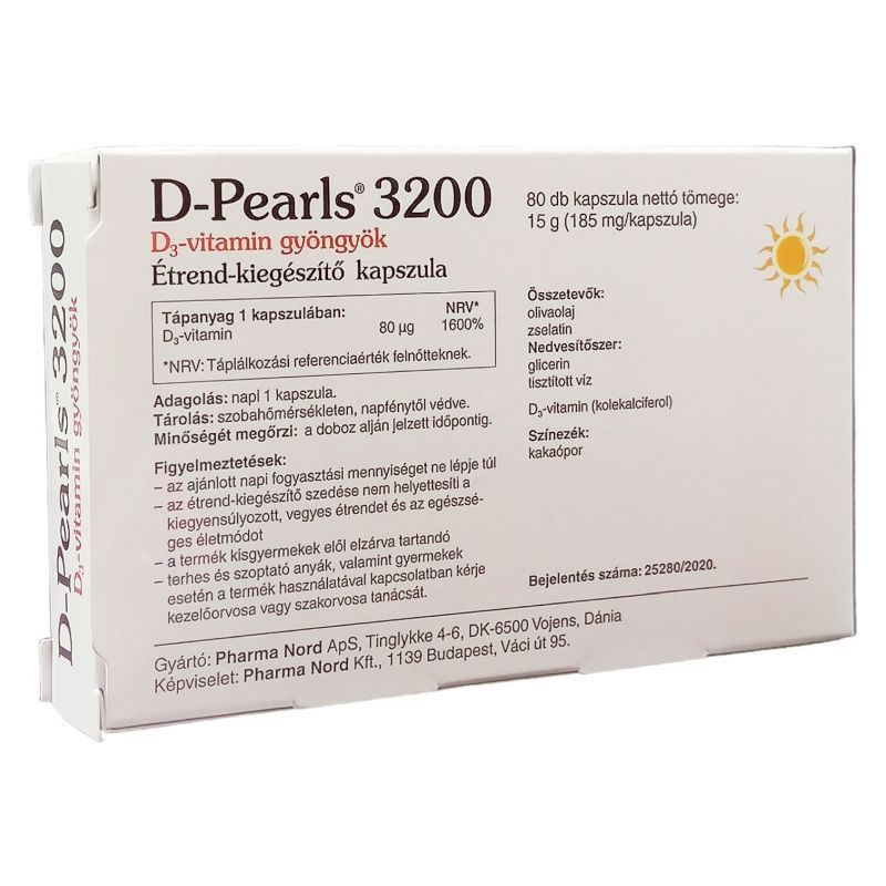 A kis gyöngyök 80 µg D3 vitamint tartalmaznak