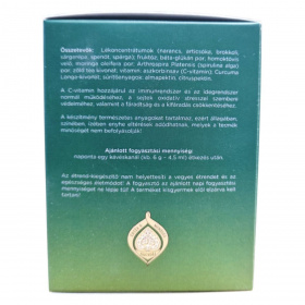 Lékoncentrátumok (narancs, articsóka, brokkoli, sárgarépa, spenót, spárga); fruktóz; béta-glükán por; homoktövis velő; moringa oleifera por; Arthrospira Platensis (spirulina alga) por; zöld tea kivonat; vitamin: aszkorbinsav (C-vitamin); Curcuma Longa-kivonat; sűrítőanyagok: almapektin, citruspektin.