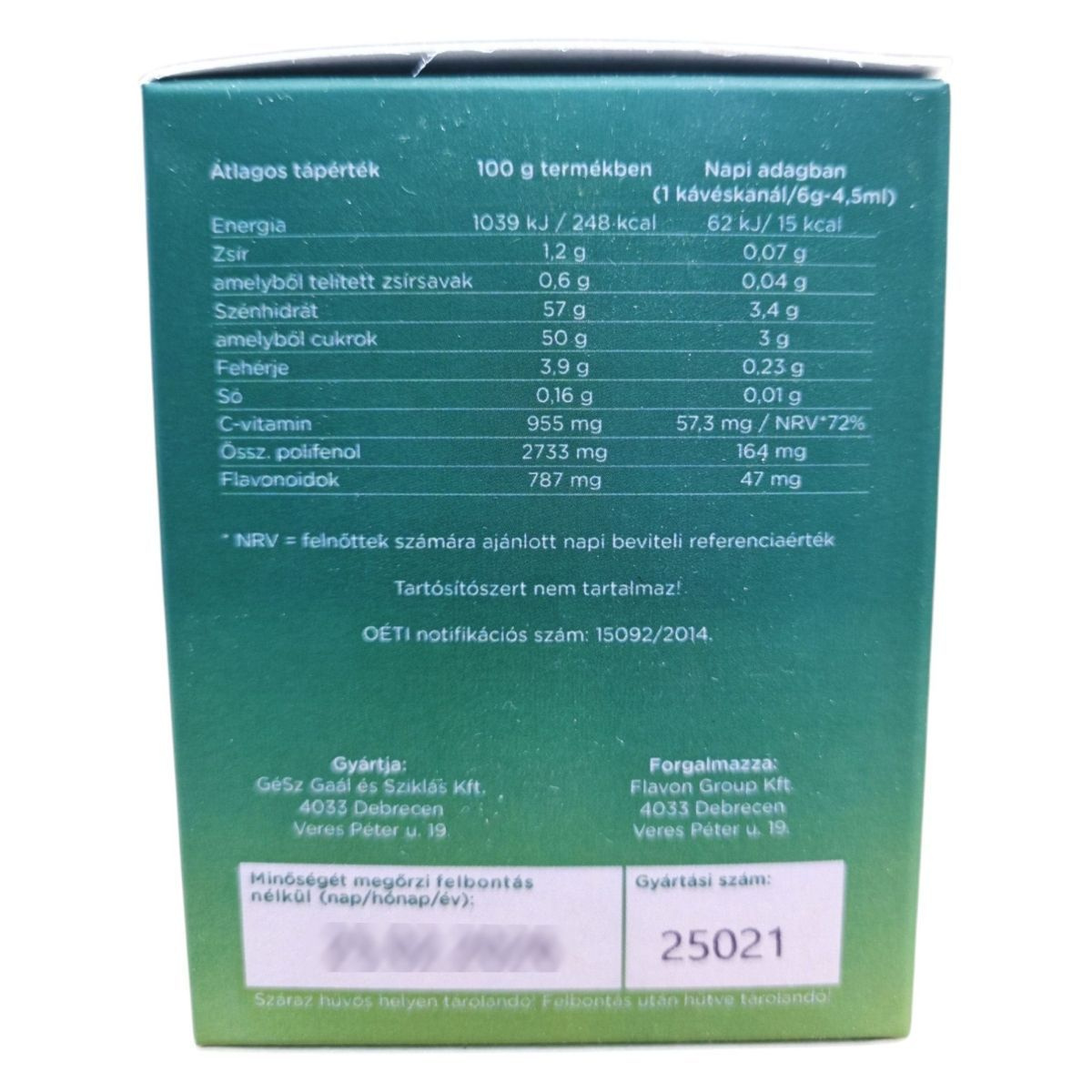 Az étrend-kiegészítő nem helyettesíti a vegyes étrendet és az egészséges életmódot! A fogyasztó az ajánlott napi fogyasztási mennyiséget ne lépje túl! A terméket kisgyermek elől elzárva kell tartani!