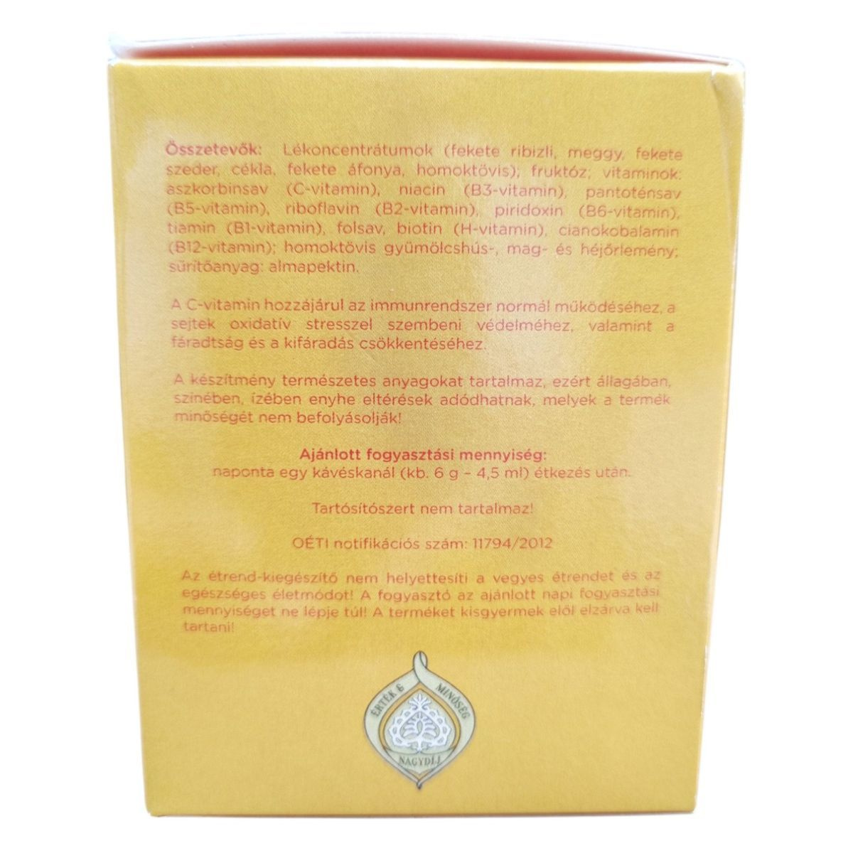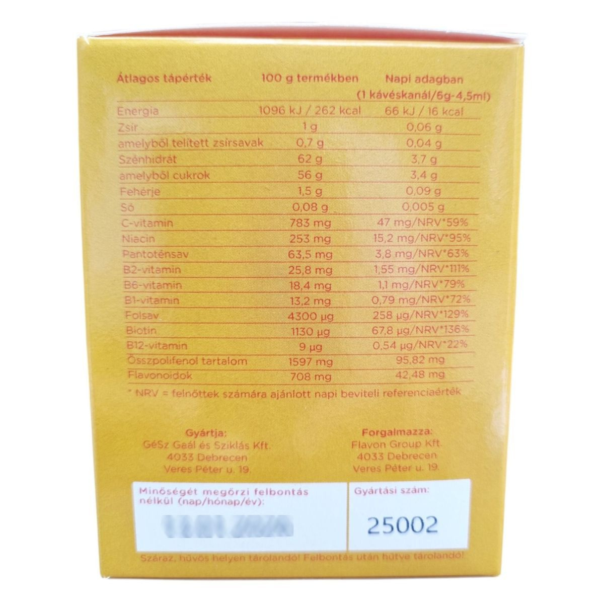 Az étrend-kiegészítő nem helyettesíti a vegyes étrendet és az egészséges életmódot! A fogyasztó az ajánlott napi fogyasztási mennyiséget ne lépje túl! A terméket kisgyermek elől elzárva kell tartani!