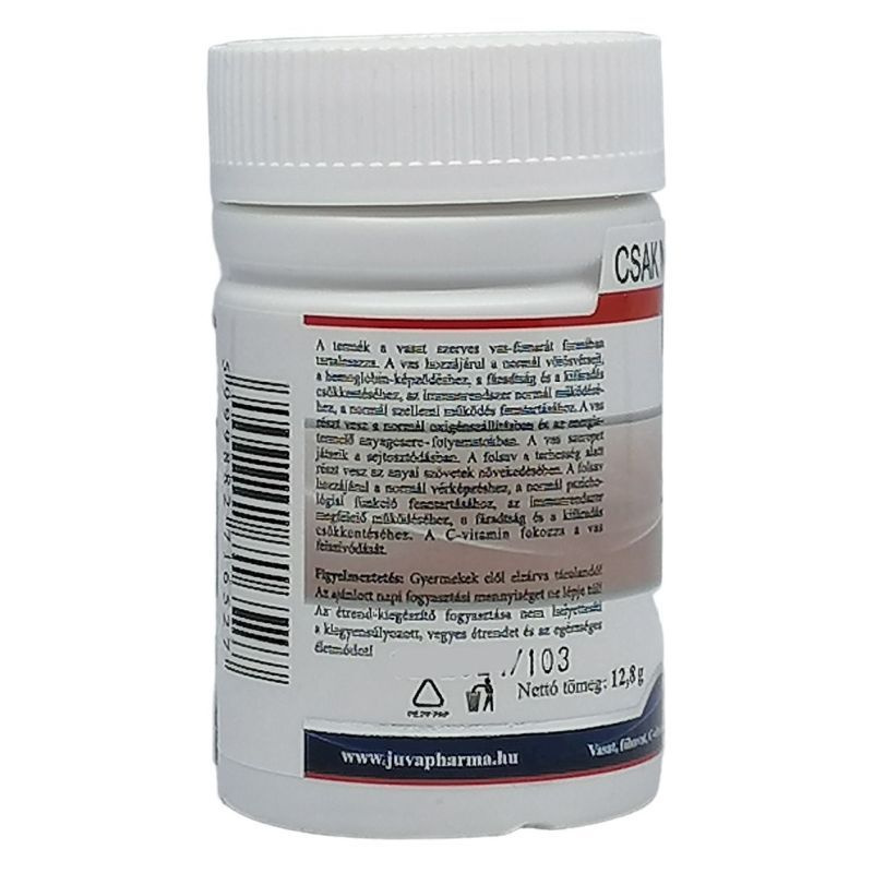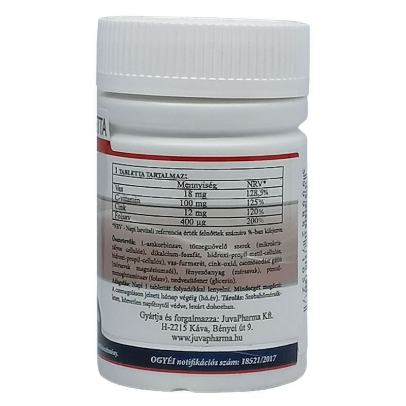 A C-vitamin, B12-vitamin és cink segítik a vas felszívódását, és fontosak a vörösvérsejtek képződéséhez. Adagolás: napi 1 tabletta. Hatóanyagok 1 tablettában: B12-vitamin (canokobalamin): 6 ľg, C-vitamin (aszkorbinsav): 100 mg, Cink: 12 mg, Folsav: 400 ľg, Vas: 18 mg.