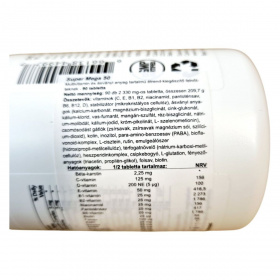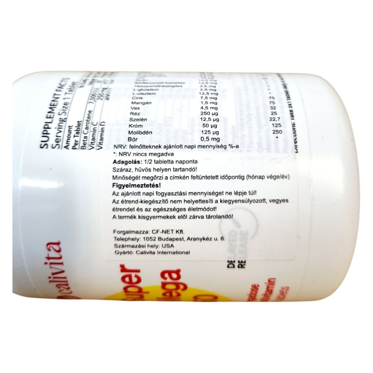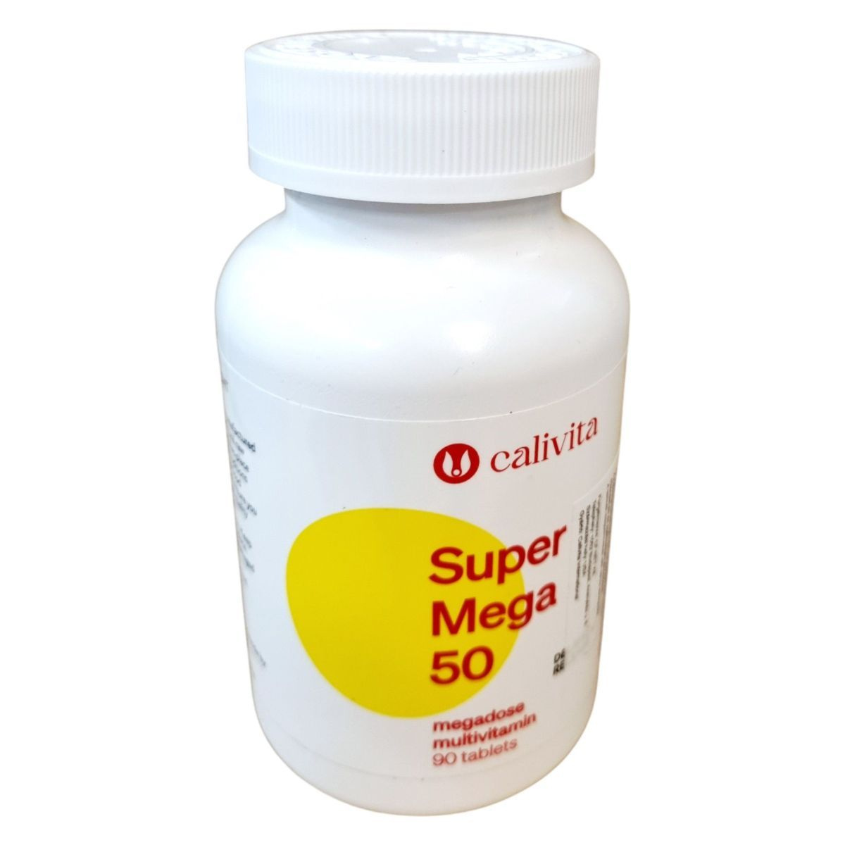A Calivita Super Mega 50 egy megadózisú multivitamin és ásványi anyag tartalmú étrend-kiegészítő, amelyet felnőttek számára fejlesztettek ki. A termék 90 tablettát tartalmaz, amelyek különböző vitaminokat és ásványi anyagokat biztosíthatnak a szervezet számára. A termék összetevői között megtalálhatóak a C-vitamin, E-vitamin, B-vitaminok, D-vitamin, valamint ásványi anyagok, mint a kalcium, magnézium, cink és vas. Ezek az összetevők hozzájárulhatnak a szervezet egészséges működéséhez. A terméket száraz, hűvös helyen kell tárolni, és fontos, hogy az ajánlott napi fogyasztási mennyiséget ne lépjük túl. Az étrend-kiegészítő nem helyettesíti a kiegyensúlyozott, vegyes étrendet és az egészséges életmódot.