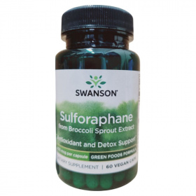 A Swanson Szulforafán étrend-kiegészítő brokkoli csíra kivonatot tartalmaz, amely szulforafánban gazdag. A termék napi adagja egy kapszula, amely 400 mcg szulforafánt biztosít. A kapszulák növényi alapúak, így vegetáriánusok számára is alkalmasak lehetnek. A termék tartalmaz szulfitokat, ezért allergiások számára nem ajánlott. A termék használata nem javasolt terhesség és szoptatás alatt. A termék minőségét a doboz oldalán jelzett hónap végéig őrzi meg. Forgalmazza a Creams of Norway Kft., Debrecen.