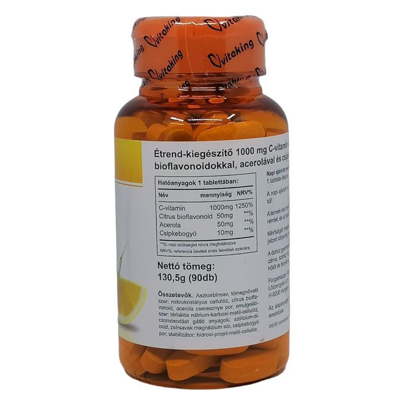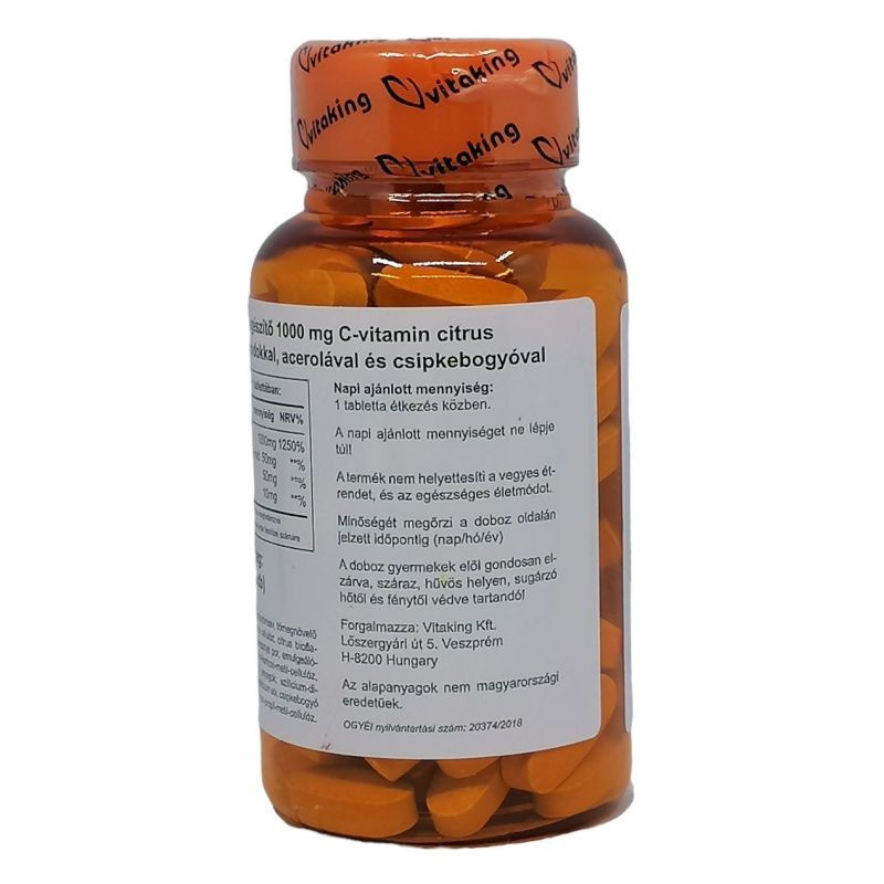 Hatóanyagok 1 tablettában: C-vitamin 1000 mg, csipkebogyó 25 mg