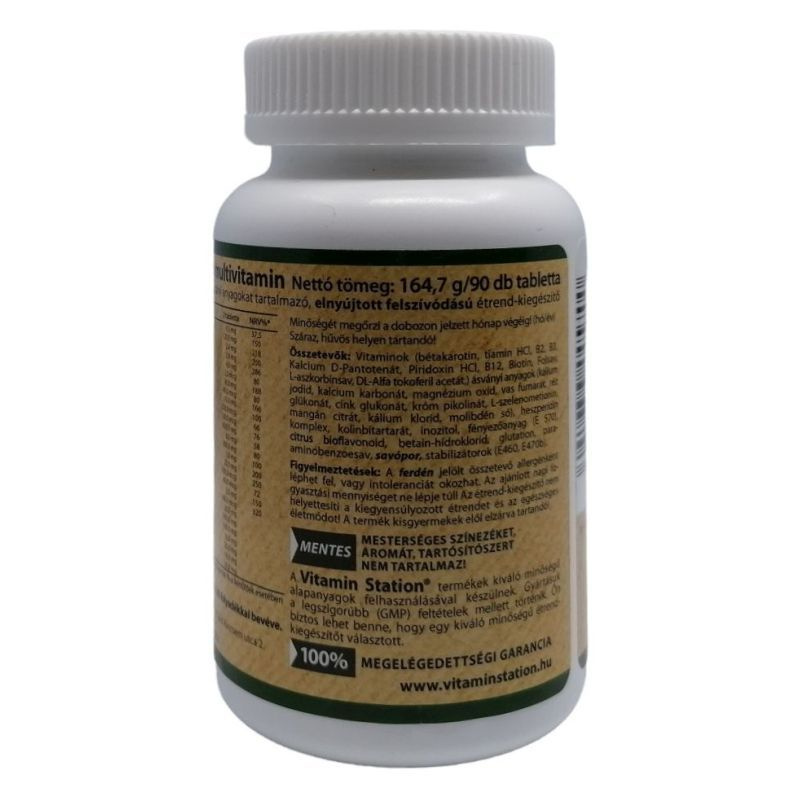 A multivitamin tabletta vitaminokat és ásványi anyagokat tartalmaz, támogatva a szervezet napi szükségleteit.