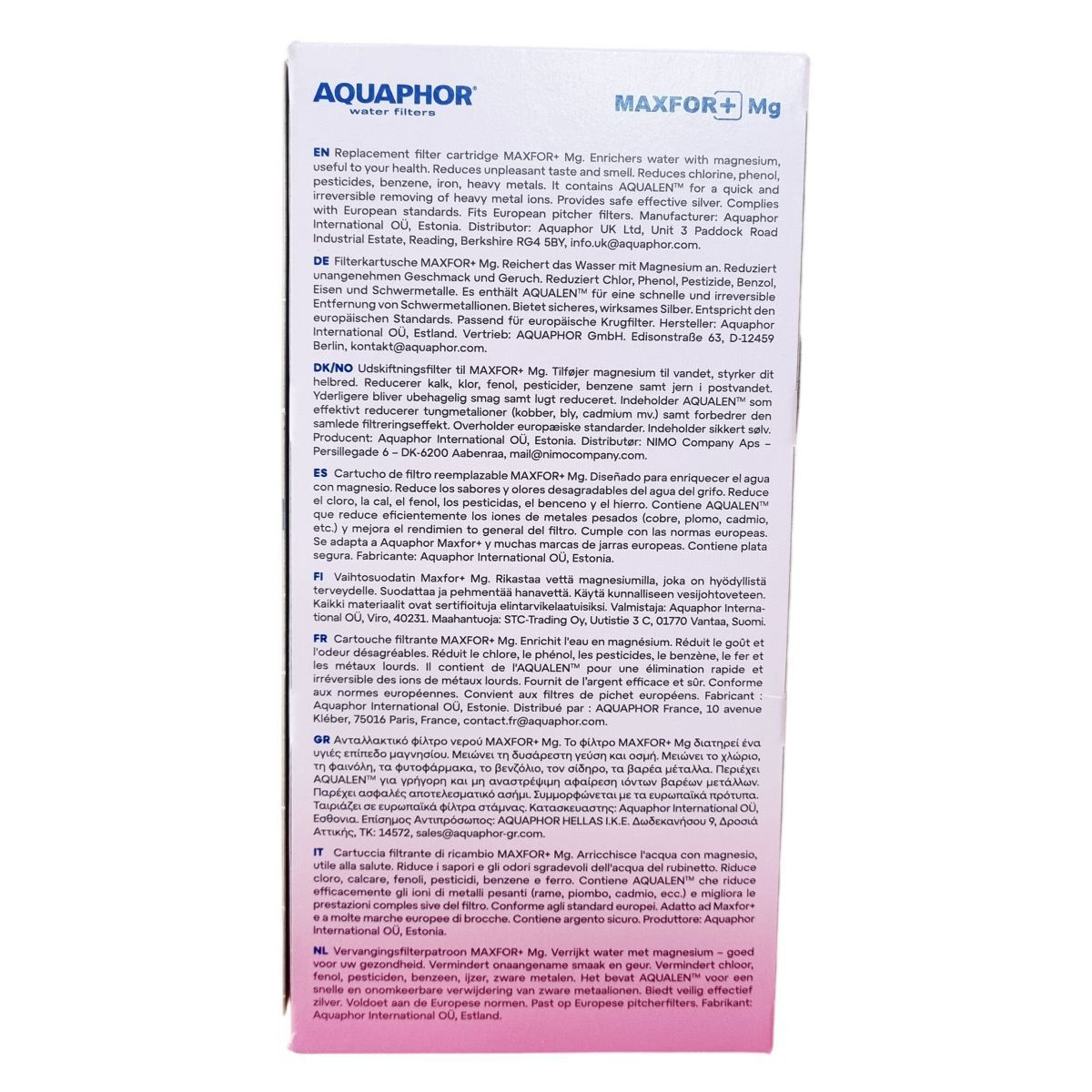 Aquaphor International OÜ, Aquaphor România S.R.L., Aquaphor Poland Sp. z o.o., AKVAFOR d.o.o., AQUAPHOR GmbH, Aquaphor UK Ltd, AQUAPHOR France, AQUAPHOR HELLAS I.K.E., NADEMA d.o.o., Agria Aqua Kft.