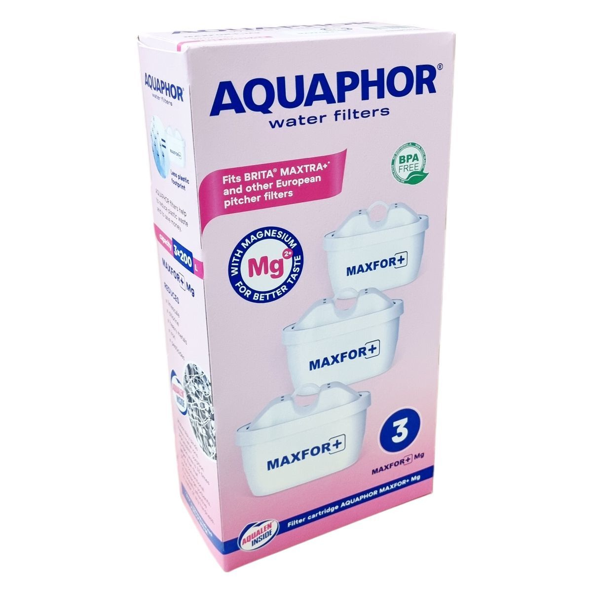 A MAXFOR+ Mg csereszűrő betét hatékonyan védi a vízszűrő kancsókat a vízkő lerakódásától. Képes eltávolítani a vasat, nehézfémeket (például ólom, kadmium), klórt, fenolt, peszticideket és egyéb káros vegyületeket, miközben megszünteti a víz rossz ízét és szagát. Az AQUALEN™ technológia révén gyors és visszafordíthatatlan ionmegkötést biztosít, ami a nehézfémek eltávolításának hatékonyságát növeli. Az ezüstionokat tartalmazó szűrő felület antibakteriális hatású, így megakadályozza a káros baktériumok növekedését. A szűrő betétek megfelelnek az európai szabványoknak, és kompatibilisek számos európai gyártású vízszűrő kancsóval. Egy betét átlagosan 200 liter vezetékes víz megtisztítására alkalmas. A termék FSC tanúsítvánnyal rendelkező újrahasznosított anyagokból készült csomagolásban érkezik, elősegítve ezzel a környezetvédelemhez való hozzájárulást és a műanyag hulladék csökkentését.