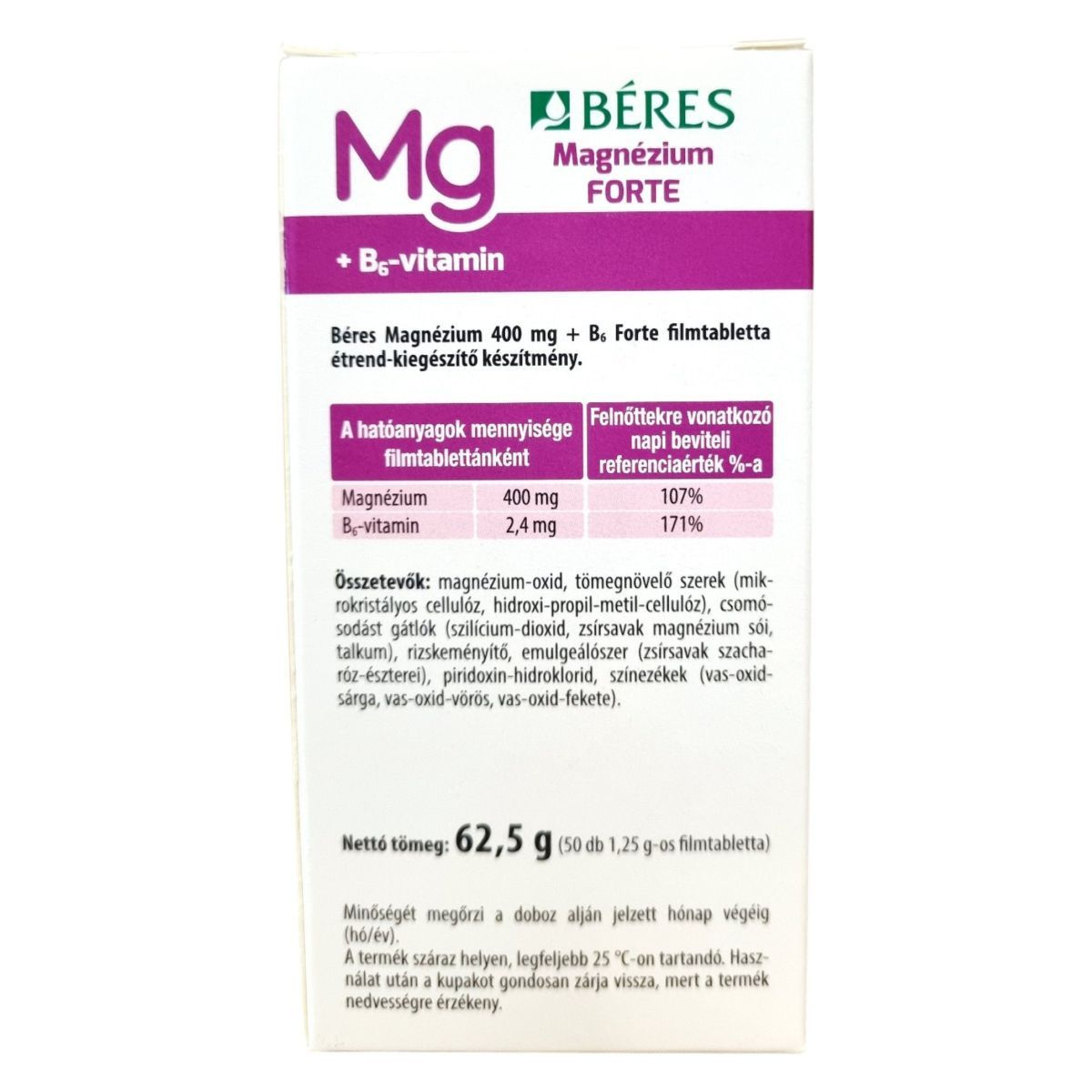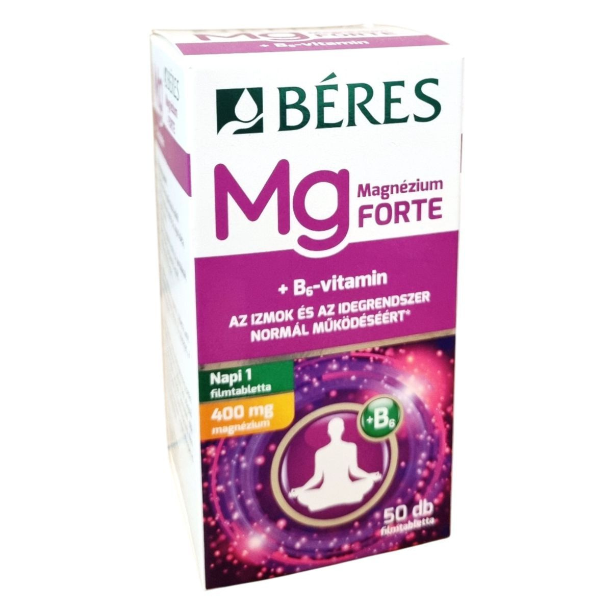 A Béres Magnézium Forte + B6-vitamin filmtabletta étrend-kiegészítő, amely hozzájárulhat az idegrendszer és az izmok normál működéséhez, a pszichológiai funkciók fenntartásához, valamint a fáradtság és a kimerültség csökkentéséhez. A magnézium szerepet játszik az energiatermelő anyagcsere-folyamatokban, támogatja a fehérjeszintézist és a sejtosztódást, míg a B6-vitamin hozzájárulhat az immunrendszer normál működéséhez. A termék napi 1 tabletta adagban biztosítja a szervezet számára szükséges mennyiségű magnéziumot és B6-vitamint, különösen hasznos fokozott fizikai vagy szellemi megterhelés, stresszes életmód esetén. Hazai gyártású, megbízható minőségű étrend-kiegészítő, amely támogatja a vitalitást és a mindennapi teljesítményt.