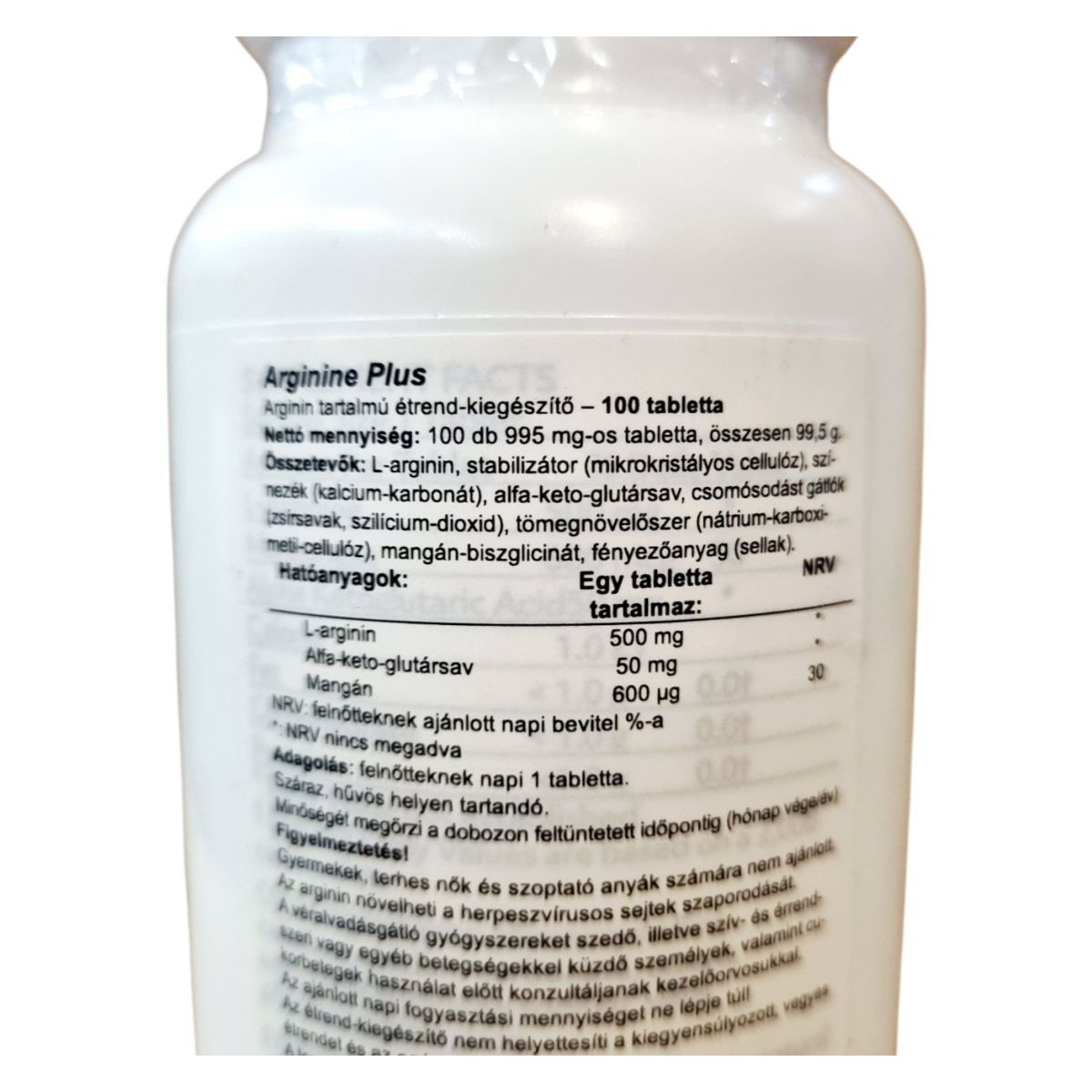 Az Arginine Plus egy arginin tartalmú étrend-kiegészítő, amely 100 db 995 mg-os tablettát tartalmaz. A termék összetevői között megtalálható az L-arginin, alfa-keto-glutársav és mangán, amelyek különböző egészségügyi előnyökkel járhatnak. A termék gyártása a legszigorúbb minőségi előírások szerint történik, biztosítva a legmagasabb minőségű étrend-kiegészítőt. A termék fogyasztása előtt javasolt konzultálni kezelőorvossal, különösen, ha valaki egészségügyi problémákkal küzd vagy gyógyszereket szed.