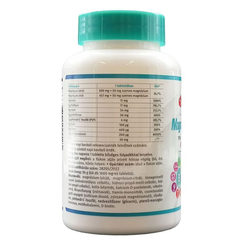 Magnéziumot (szerves eredetű), B-vitaminokat és kolint tartalmazó étrend-kiegészítő készítmény.