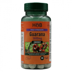 High Strength Guarana 3600 mg ENERGY tabletta. A guarana hozzájárul az éberséghez és a mentális fáradtság csökkentéséhez. Nettó tömeg: 73,9 g (90 tabletta, 30 adag). Származási hely: Egyesült Királyság. A termék nem tartalmaz mesterséges aromákat, színezékeket vagy édesítőszereket.