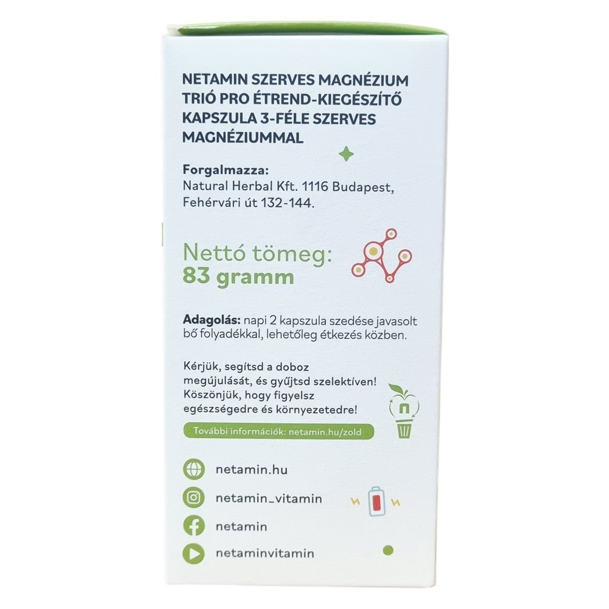 A Netamin Szerves Magnézium Trió háromféle szerves magnéziumforrást tartalmazhat, amelyek hozzájárulhatnak a fáradtság csökkentéséhez és az idegrendszer normál működéséhez. A termék bio étrendi irányzatba illeszkedhet.