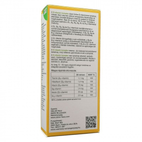 A B-komplex vízoldékony vitaminok csoportját jelenti, amely magában foglalja többek között a B1- (tiamin), B2- (riboflavin), B3- (niacin), B5- (pantoténsav), B6- (piridoxin), B7- (biotin), B9- (folát) és B12-vitamint (kobalamin). Ezek a mikrotápanyagok koenzimként vesznek részt a sejtszintű energiatermelésben, a szénhidrát-, zsír- és fehérje-anyagcserében, valamint az idegrendszer működésében és a vérképzésben. A B-vitaminok egymással szinergiában működnek, ezért kombinált bevitelük támogathatja az anyagcsere-folyamatok összehangolt működését. Vízoldékonyságuk miatt rendszeres pótlásuk indokolt lehet hiányos étrend vagy fokozott szükséglet esetén. A biztonságosság általában kedvező, de egyes komponensek nagy dózisban mellékhatásokat okozhatnak. Egyéni egészségügyi állapot vagy gyógyszerszedés esetén javasolt szakemberrel konzultálni.