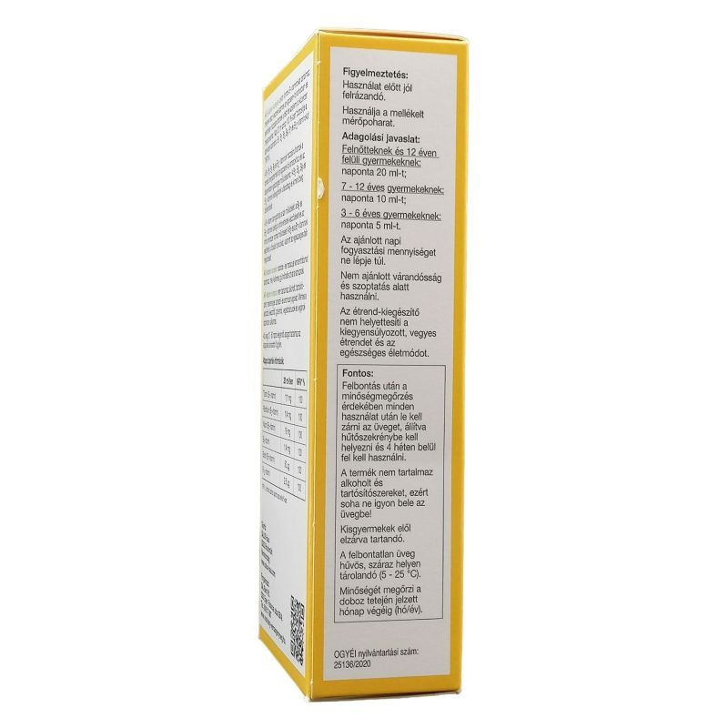 Napi 20 ml B-vitamin komplex szirup 100%-ban biztosítja a felnőtt szervezet számára a B1, B2, B3, B6, B7 és B12-vitaminokat.