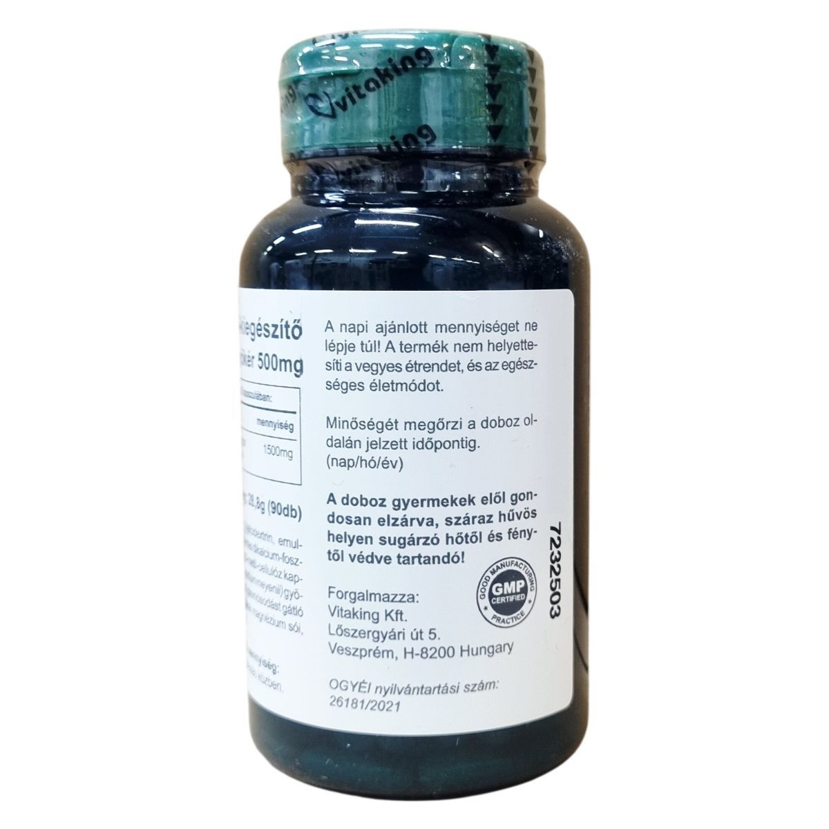 OGYÉI nyilvántartási szám: 26181/2021, GMP CERTIFIED, GOOD MANUFACTURING PRACTICE, 7232503