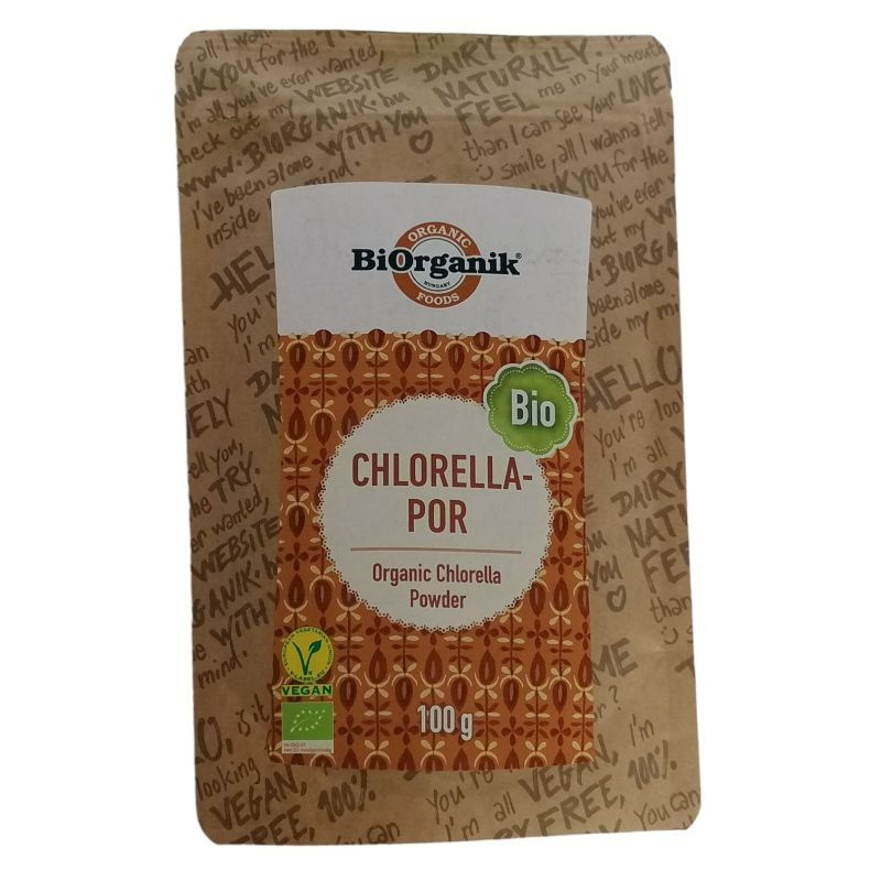 Bio chlorella por, amely gazdag tápanyagokban és támogatja a méregtelenítést és az immunrendszert.