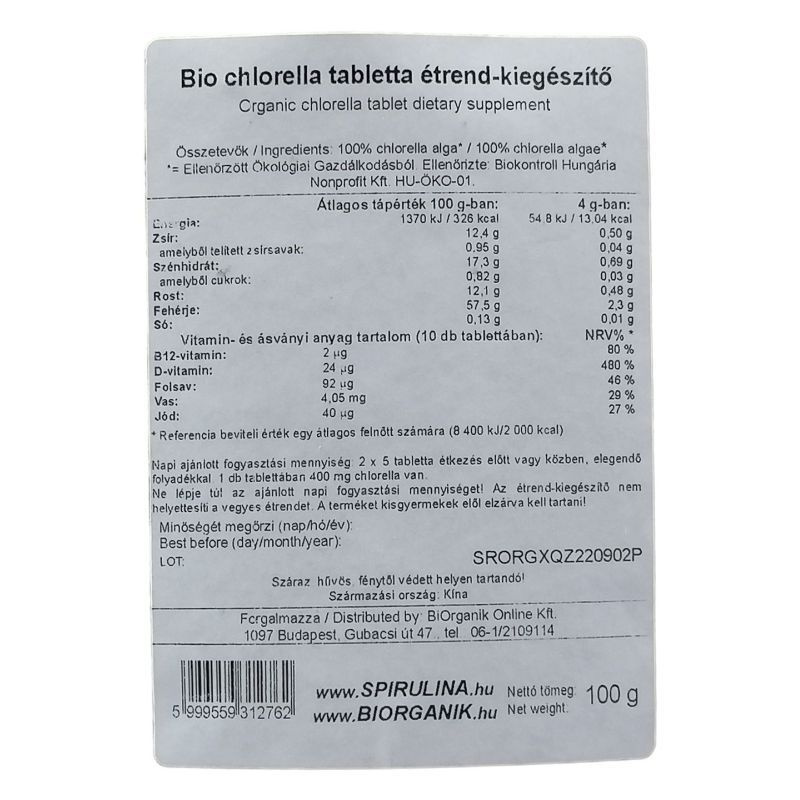 100% chlorella alga tabletta.
