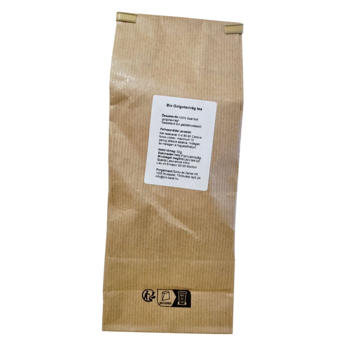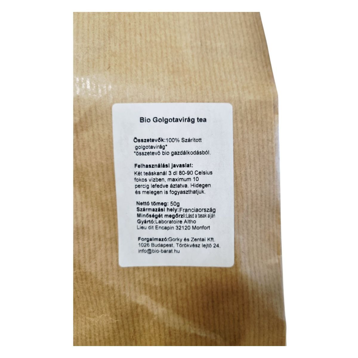 A Laboratoire Altho Passiflore tea egy Franciaországban gyártott, 100% bio gazdálkodásból származó golgotavirág alapú termék. A tea elkészítése egyszerű: két teáskanálnyi mennyiséget kell 3 dl 80-90 Celsius fokos vízben áztatni, maximum 10 percig lefedve. A termék hidegen és melegen egyaránt fogyasztható, így bármilyen évszakban élvezhető. A tárolás során ügyelni kell arra, hogy a terméket hűvös, száraz helyen, fénytől védve tartsuk. A gyártó, Laboratoire Altho, a természetes alapanyagok felhasználására és a fenntartható gazdálkodásra helyezi a hangsúlyt.