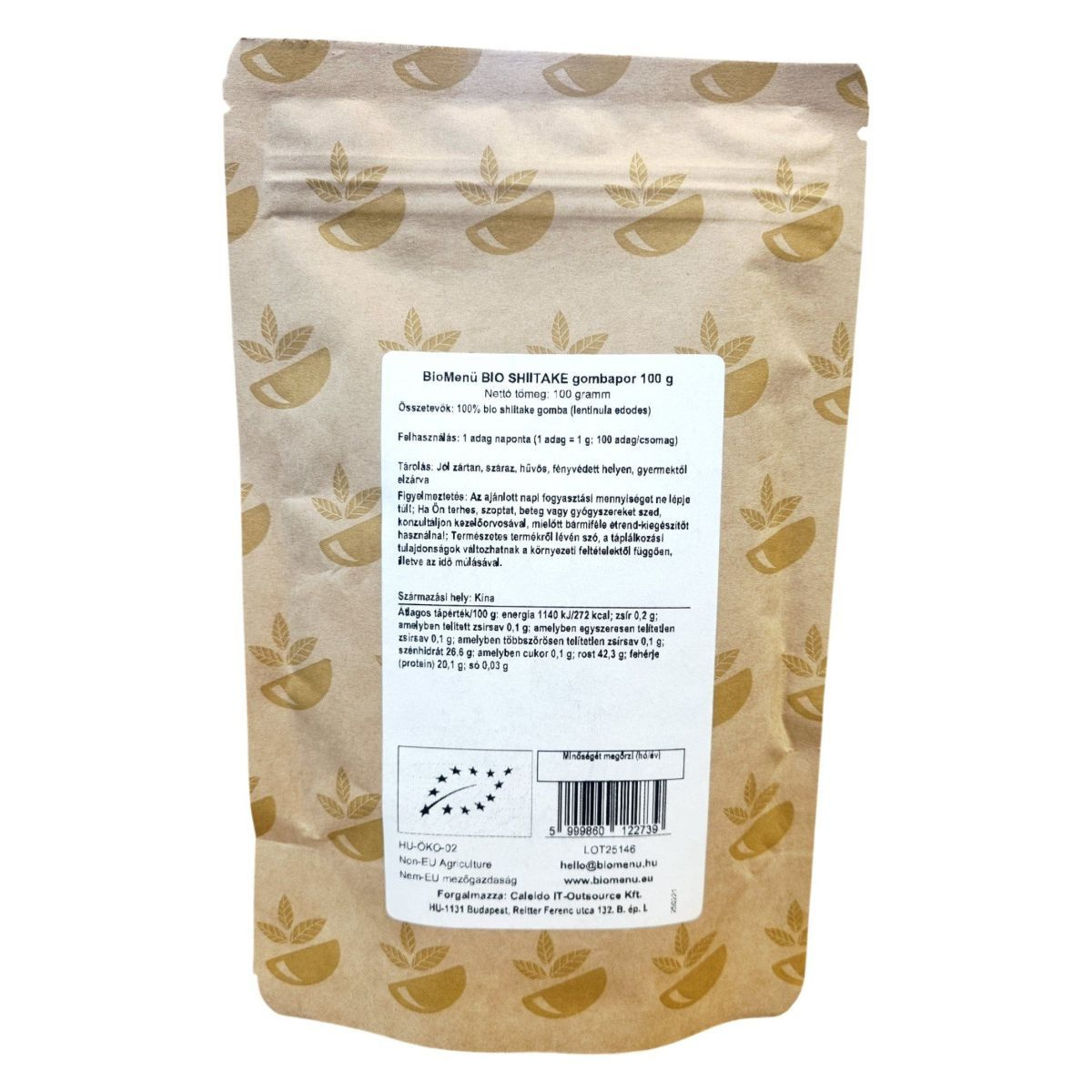 A BioMenü Shiitake gombapor 100% bio shiitake gombából készülhet, amely támogathatja az egészséges életmódot. A termék bio, raw és vegán étrendi irányzatoknak is megfelelhet.
